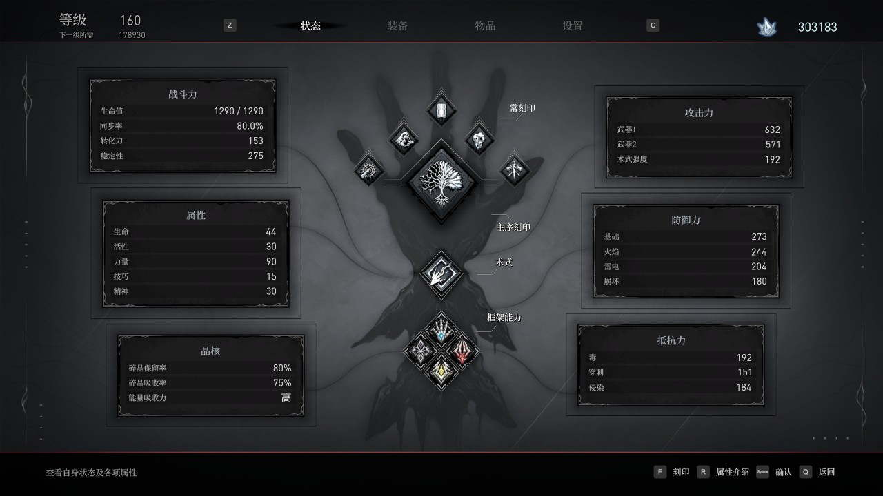 《無限機兵》裏只有五種屬性加點:生命、活性、力量、技巧、精神。