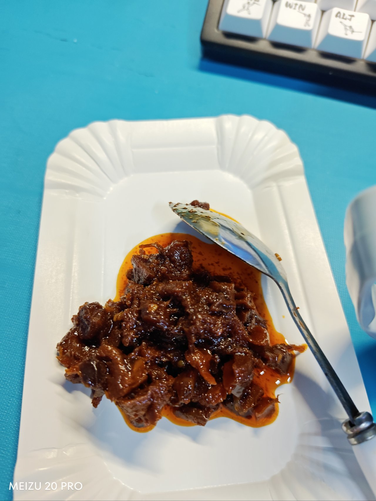 實話說,我覺得這個不算好喫,同樣是雞樅,但沒有我喫雞樅菌腐乳時一口驚爲天人的感覺,也沒有喫菌子能喫到的那種鮮香菌子香。油很多,菌子是泡在油裏的,並且沒有一點鹹味!!不知道雲南的兄弟們有沒有能爲我解惑一下的,可能是我山豬喫不了細糠,喫着只感覺沒味,跟仲景香菇醬拌了下喫了。並且口感很硬,不推薦大家買,如果它風味就是這樣那就當我沒說……