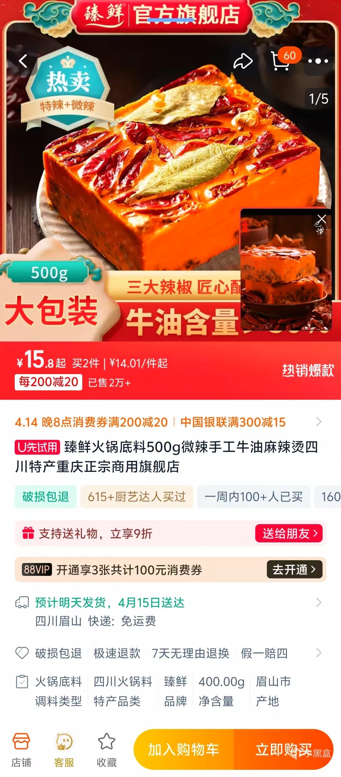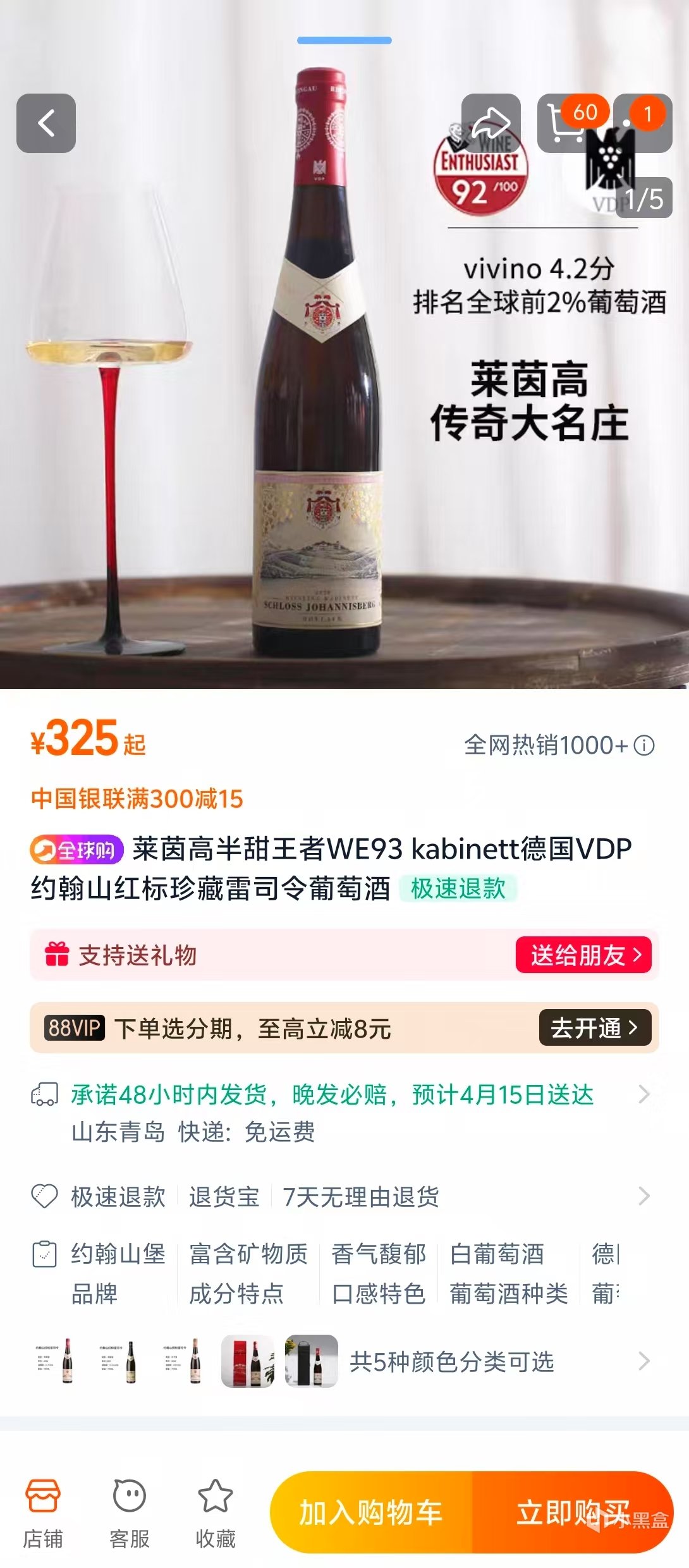 淘寶臻鮮旗艦店 13.8r/1瓶