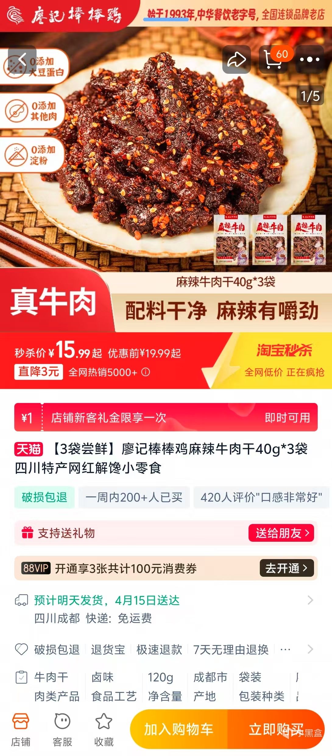 淘寶廖記棒棒雞旗艦店 15.99r/3袋