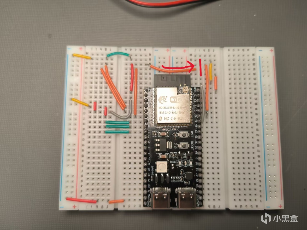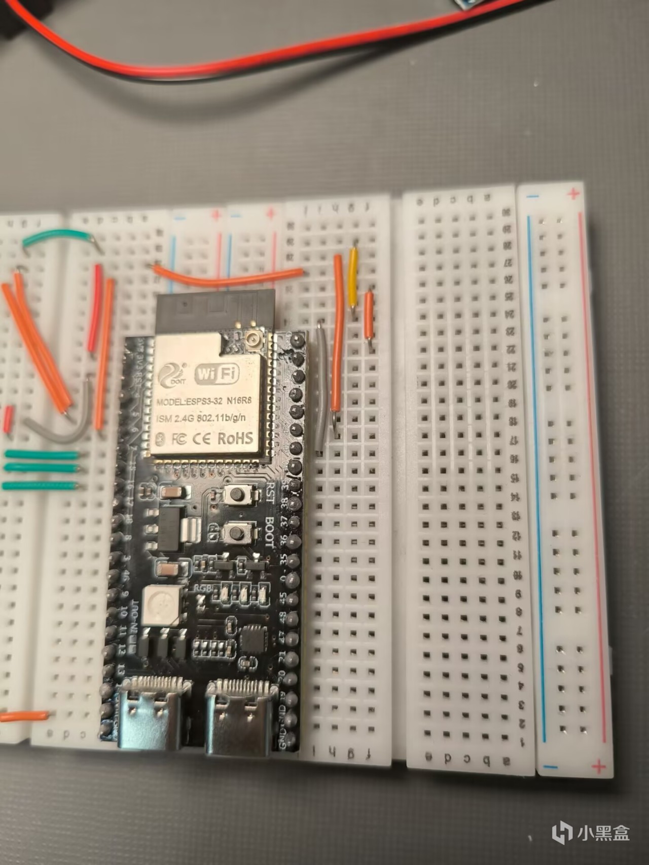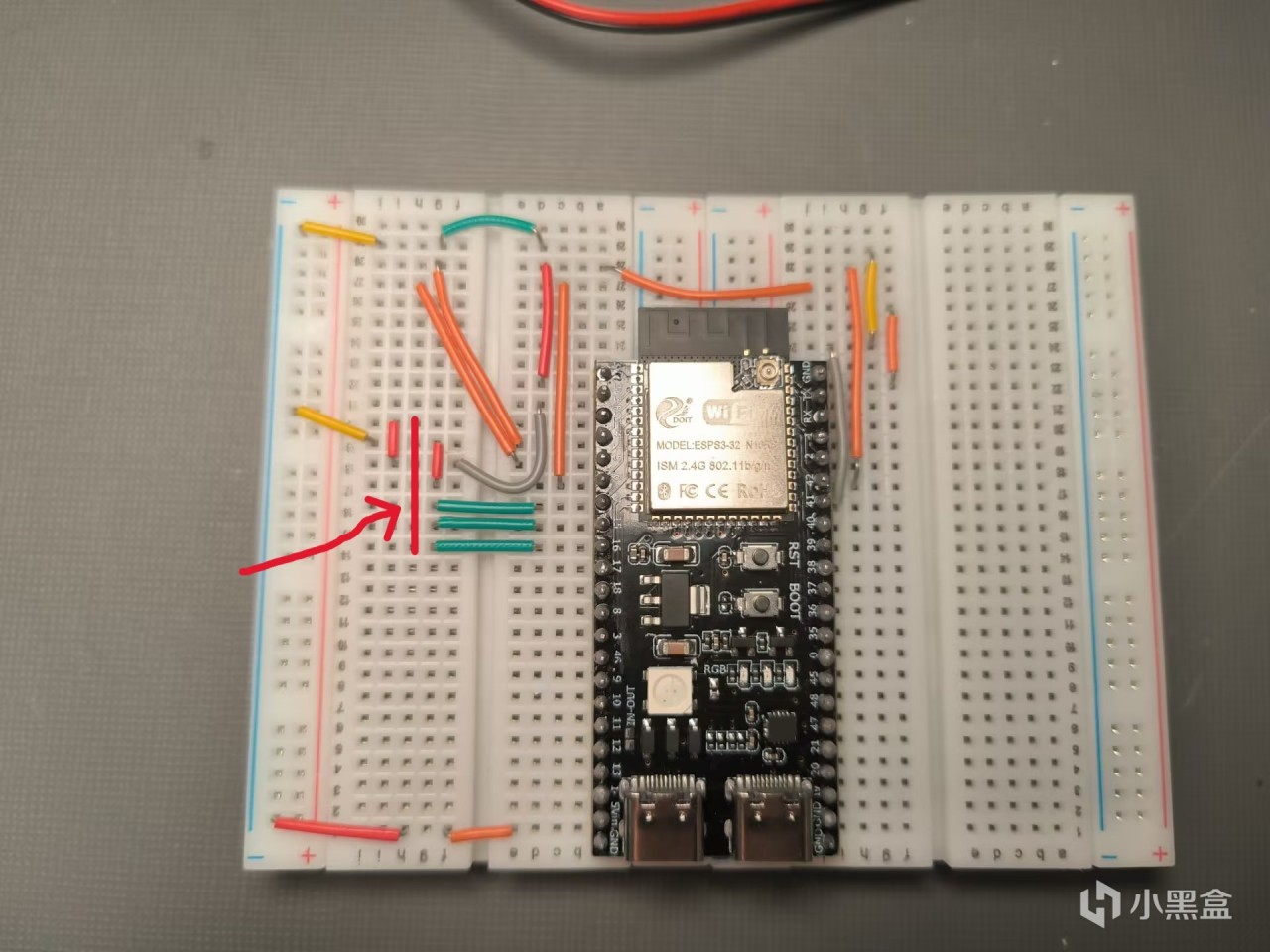當你做完這一切,用電源插入開發板右側的插口接入電腦,如果正常亮起,咱就完成了一大半!!!