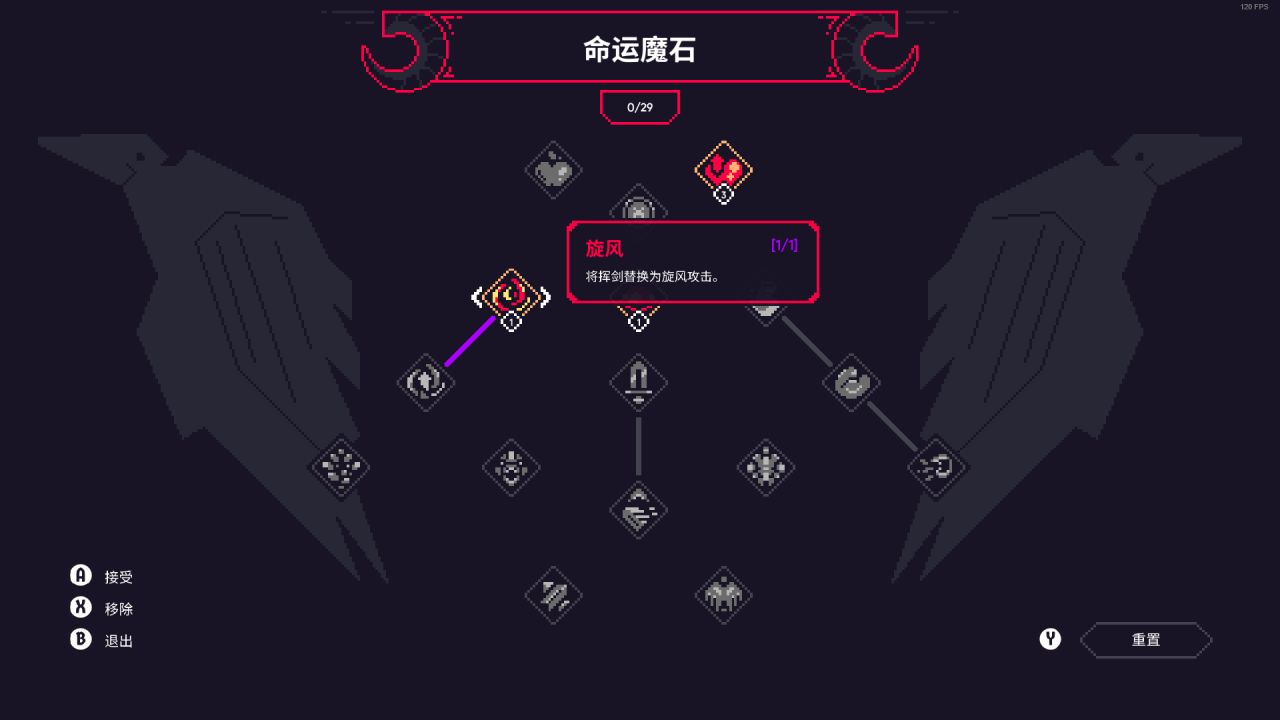 技能樹不僅能讓你獲得十分強力的技能還能獲得自身成長,血量、閃避等都可以通過技能樹大幅提升,比如加生命值,點一次就可以讓玩家初始生命增加一半,隨後每次增加的血量數額都相同,閃避同理,初始最多閃避兩次,點一次技能加一次。這種局外的成長更加凸現初始局內人物的孱弱,簡單說新手不太友好。