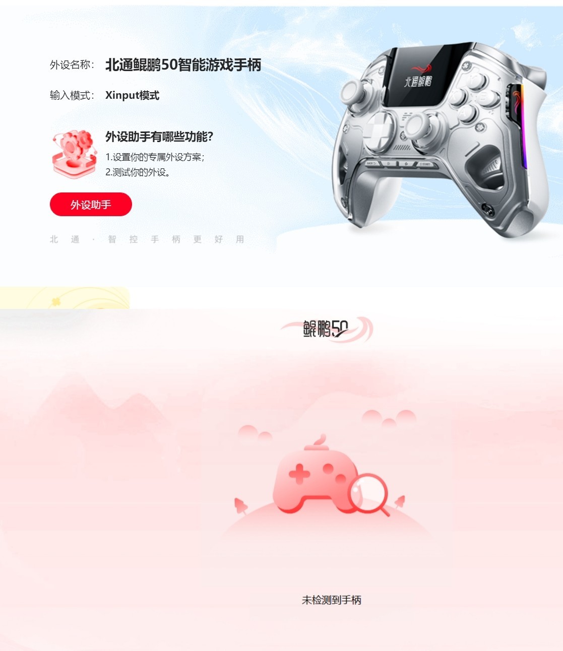 (pc端 北通遊戲廳外界助手根本無法連接鯤鵬50問了客服才知道只有升級固件才能連接,其他模式無法連接……)