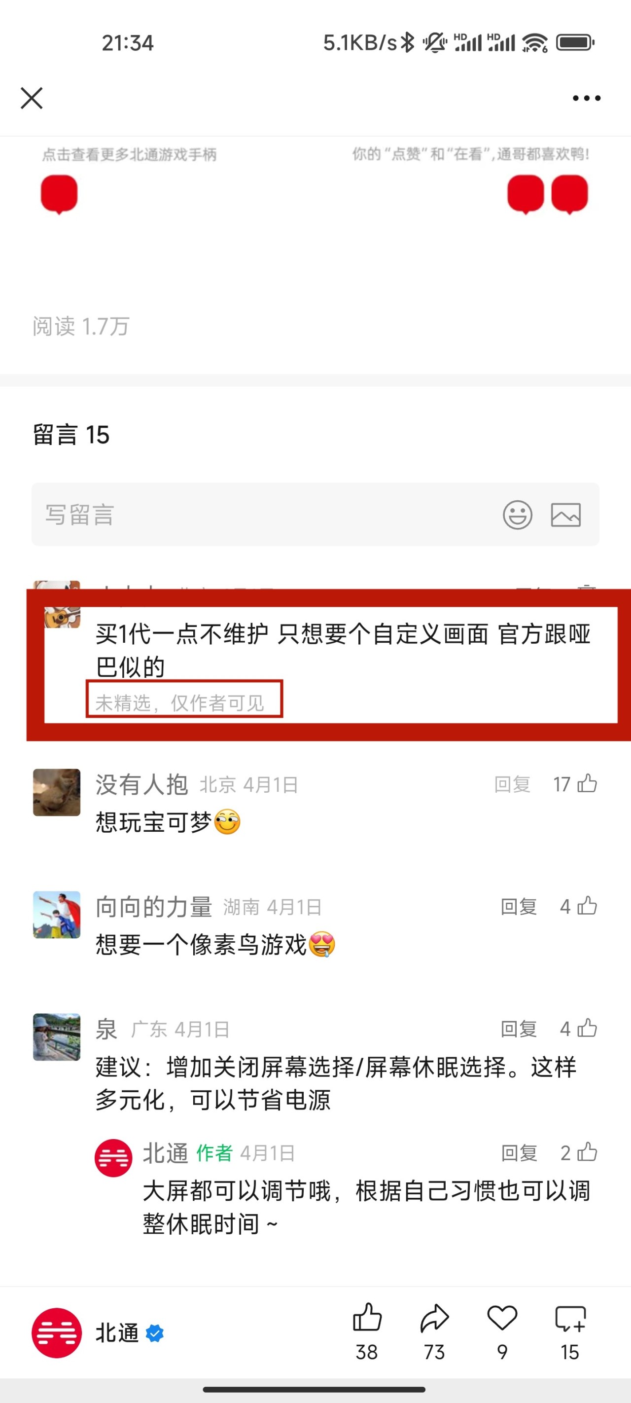 我還在北通公衆號上留言,北通客服也不說話,也不敢精選,自知理虧?其實我只是想要個自定義畫面。