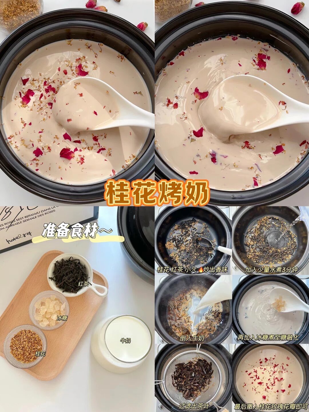 ❶ 牛奶+桂花糖小火煮出香味。