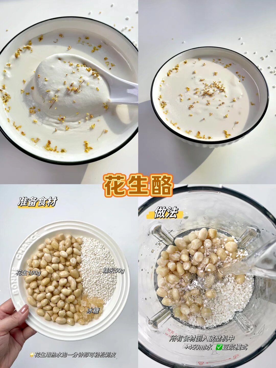 ❶ 生花生+糯米(3:1)浸泡2小時,加水打成漿。