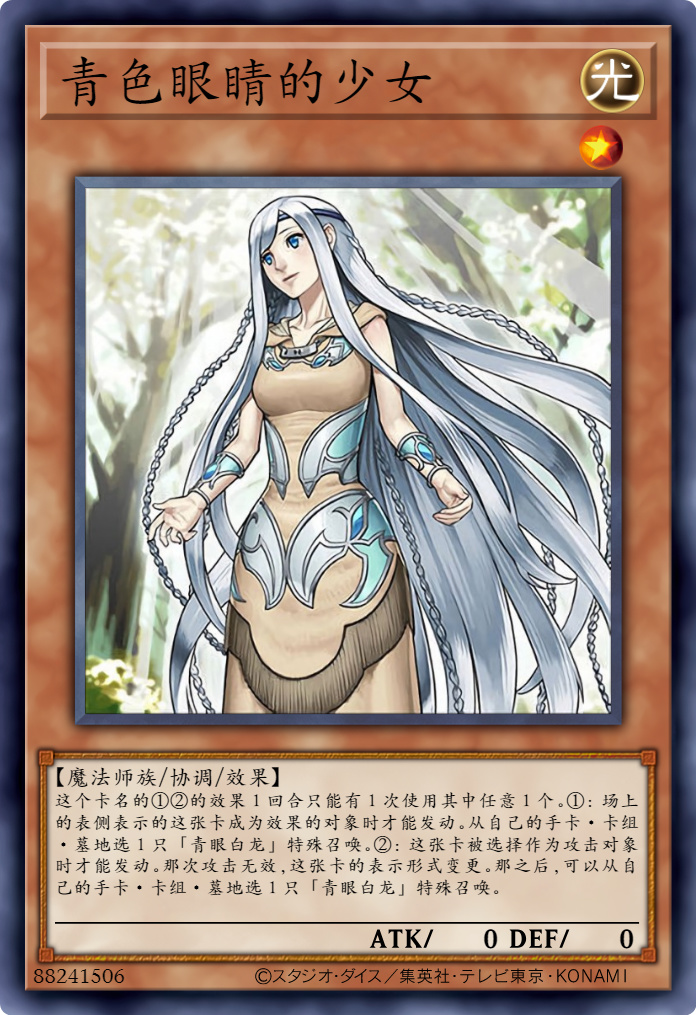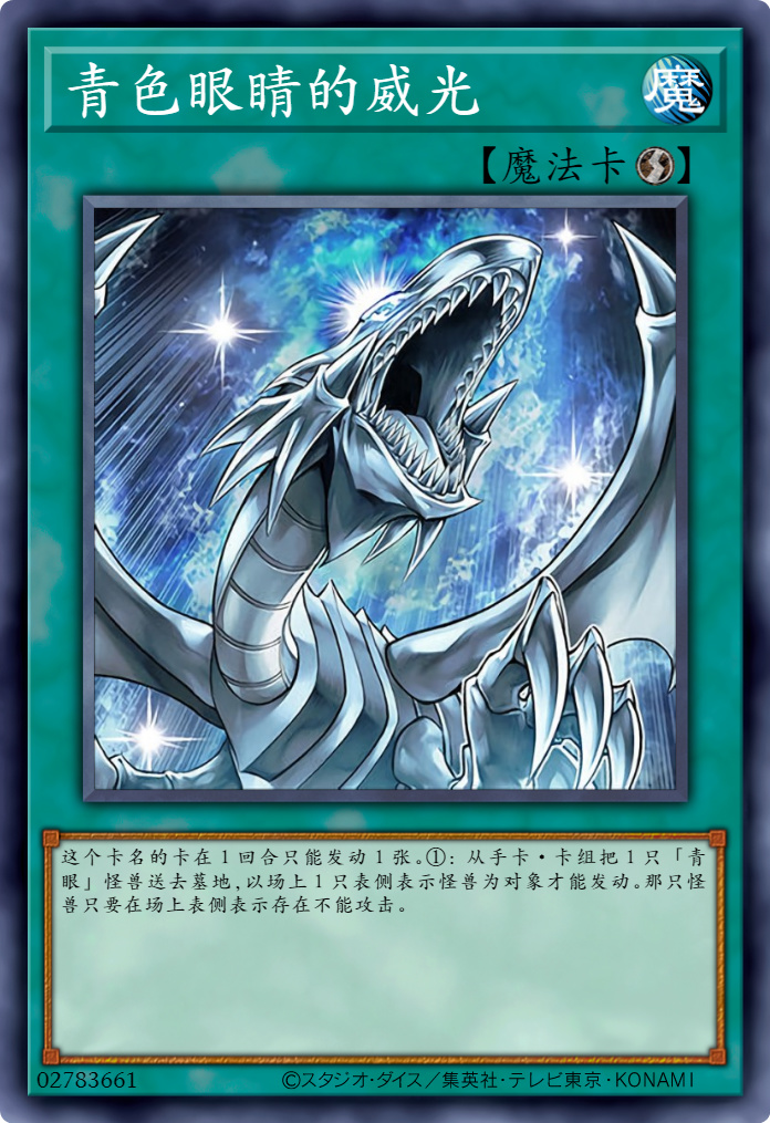 青色眼睛的少女此刻的心情可以说是激动得难以言表,根据古之规则书上所记载的内容显示,这石板便是化身为精灵后的青眼白龙力量的汇集之所。如果能够激活这块石板上的力量,那么就可以唤来传说中的青眼白龙。这么长时间的努力终于获得回报,青色眼睛的少女的脸上久违地露出爽朗的笑容,然而很快这笑容就凝固在了她的脸上。一只黄白相间的巨龙突然从石板后面飞出,等到她反应过来的时候,青眼白龙的石板就被那巨龙送进了异次元的空间之中。