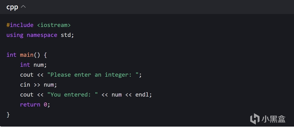 在這段代碼中,std::cin >> num 會從鍵盤讀取一個整數,並把它存儲到變量 num 中。