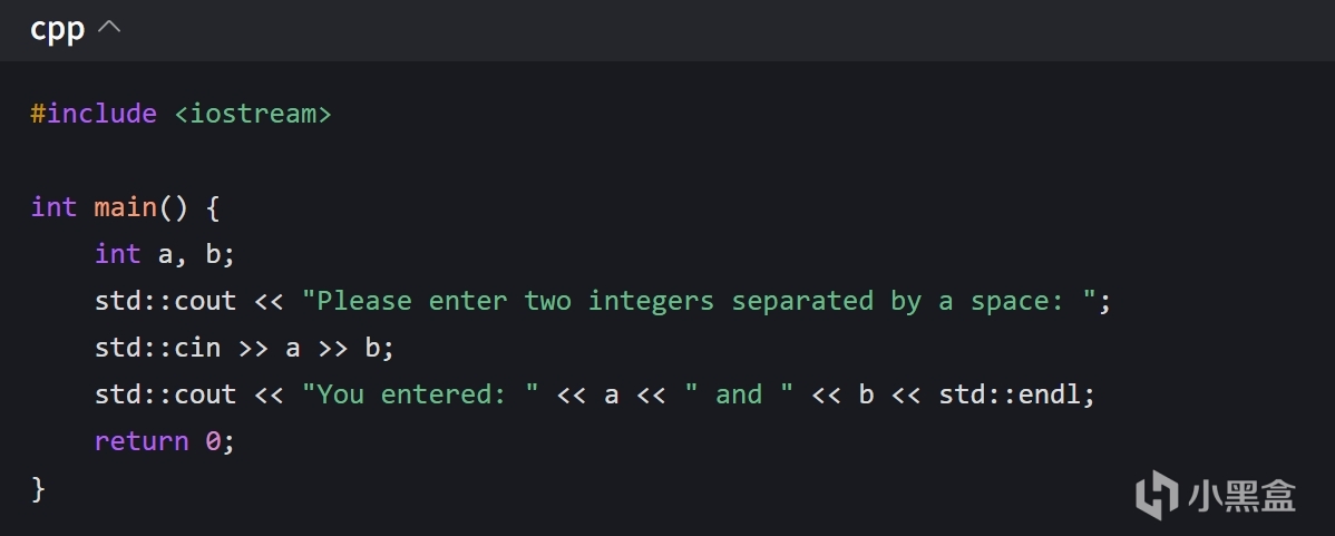 在上述示例中,std::cout 和 std::cin 裏的 std 是標準庫的命名空間。爲了避免每次都寫 std::,可以在代碼開頭使用 using namespace std; 語句: