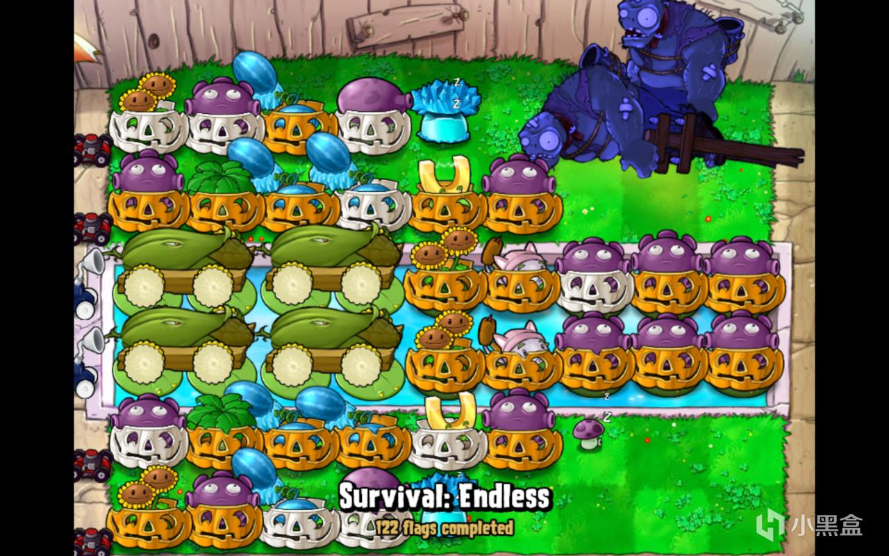 在打的大道都磨滅了的無限泳池中,大噴菇和憂鬱菇絕對是常駐輸出的主角,冰西瓜甚至淪爲了減速工具人。以前一直以爲憂鬱菇無效輸出多,射程短。但在無限泳池中,他卻能在荷葉上將輸出發揮到機制。大噴菇在具有和西瓜一樣高貴的羣傷的同時,高射速以及整行貫穿傷讓他在超大批屍潮中的輸出總額比西瓜還高。以前一直以爲30輪就是這個遊戲的極限了,現在看來僅僅只是陣容的問題。