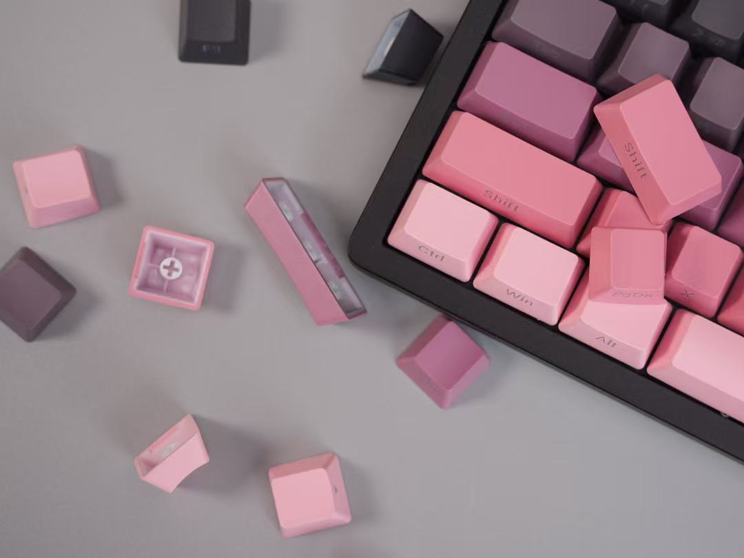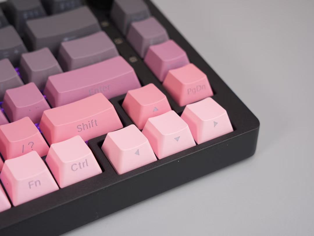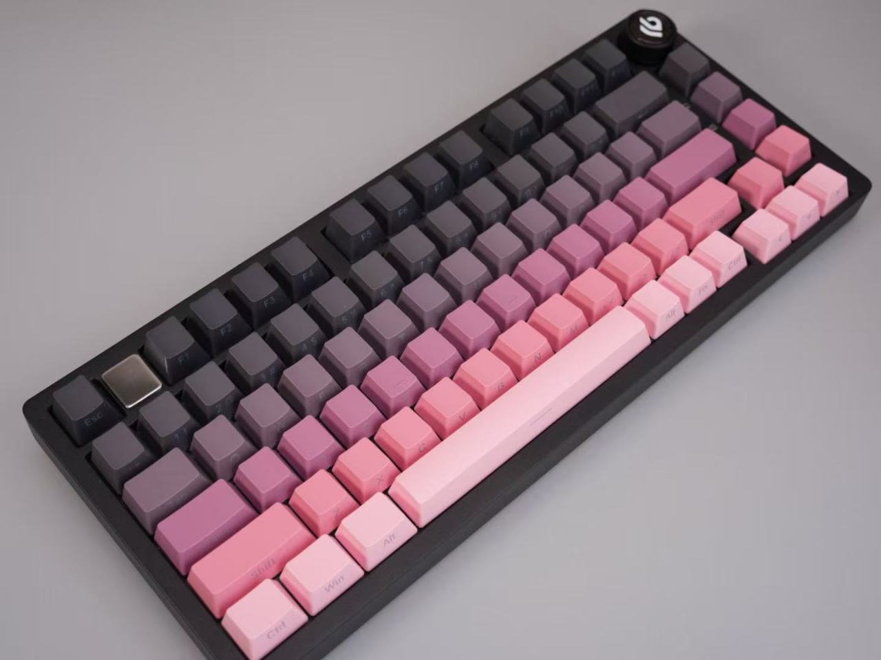 Hi75C 此次推出了套件版本單獨售賣,不過baby因爲比較忙,就直接選擇了成品。鍵帽高度採用原廠高度, PBT 材質的雙色工藝,質感不錯。配色方面,延續了大家常見的漸變側刻設計,看起來十分美觀。至於整體做工,處於當下的大衆水準,中規中矩 。