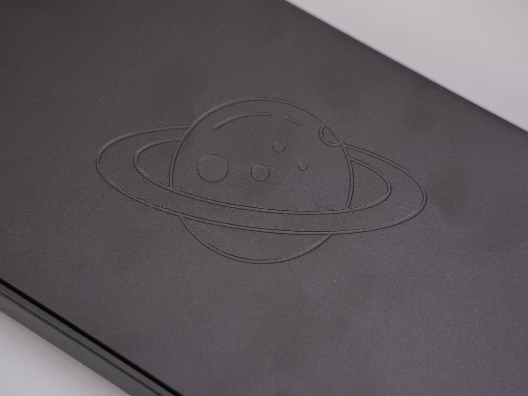 Hi75C 的外包裝相比之前,換成了更加環保的瓦楞紙箱;然後,在上面做了一些太空元素的塗鴉。