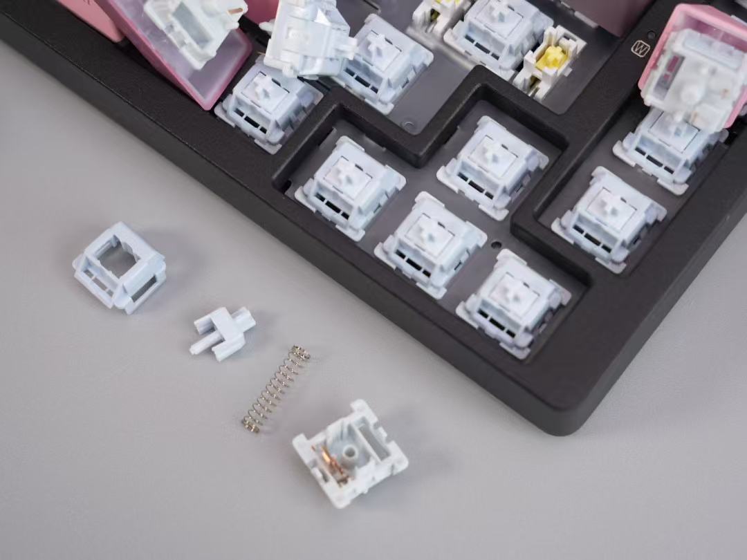 我手上這把 Hi75C 搭載的是星矢軸。這軸體早在去年就被冠以 “6 毛戰神” 的名號,性價比相當出色。它採用 PC 上蓋、POM 軸心以及尼龍底殼。不過,由於軸心是十字軸心且沒有防塵壁,在穩定性方面稍有欠缺。好在軸體進行了出廠潤滑,手感順滑還是不錯的。