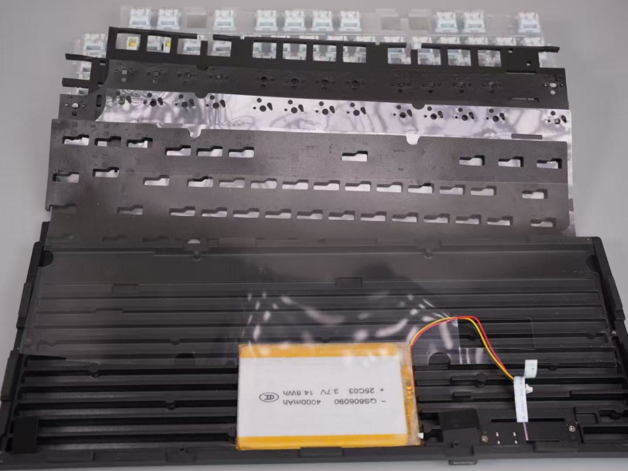 定位板:採用的單鍵開槽透明pc定位板,這樣能讓gasket結構變得非常軟彈!