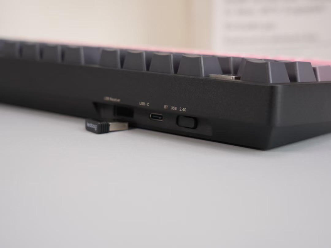 Hi75C 將 2.4G 收納槽、Type - c 數據線接口以及模式切換按鍵,都集中設計在了鍵盤頂部的左上角位置。