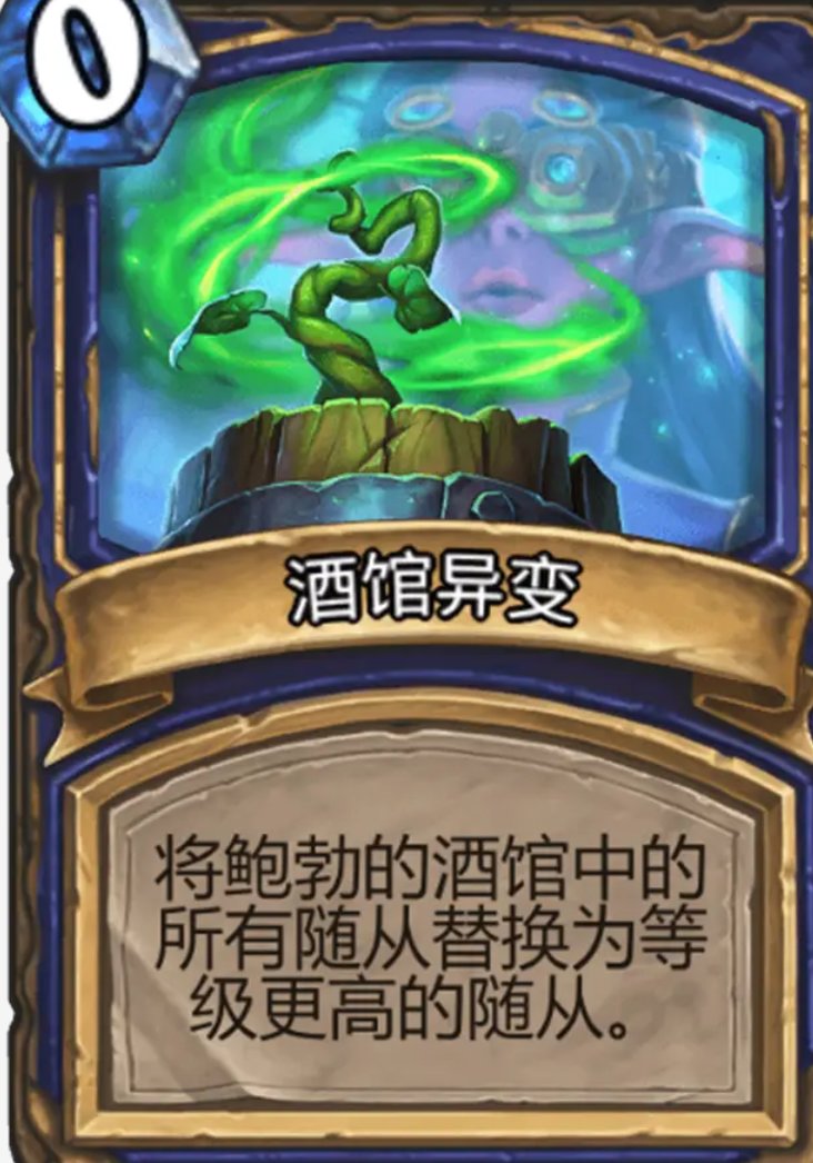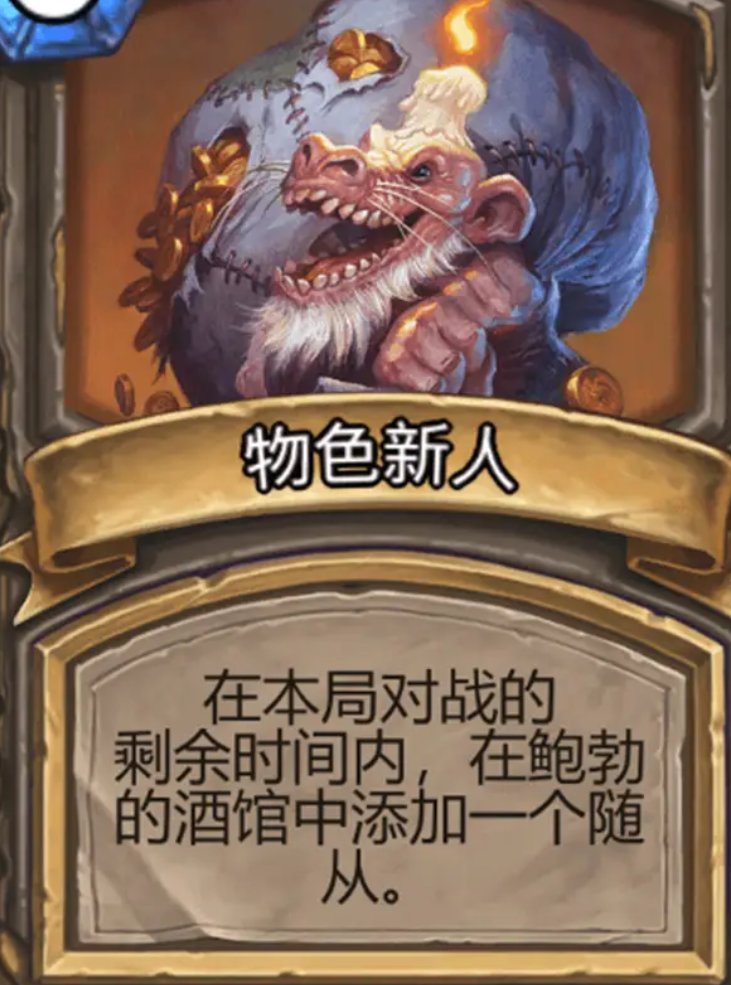 在本版本的畸變中,升級酒館發現暗月獎品的畸變裏,可以選擇這個發現隨從和得鑄幣的獎品,這樣在第三回合五鑄幣上限的時候,可以賣這個隨從或者打出鑄幣卡去升三本。這兩個畸變在我看來是這個版本最好的一級暗月獎品。