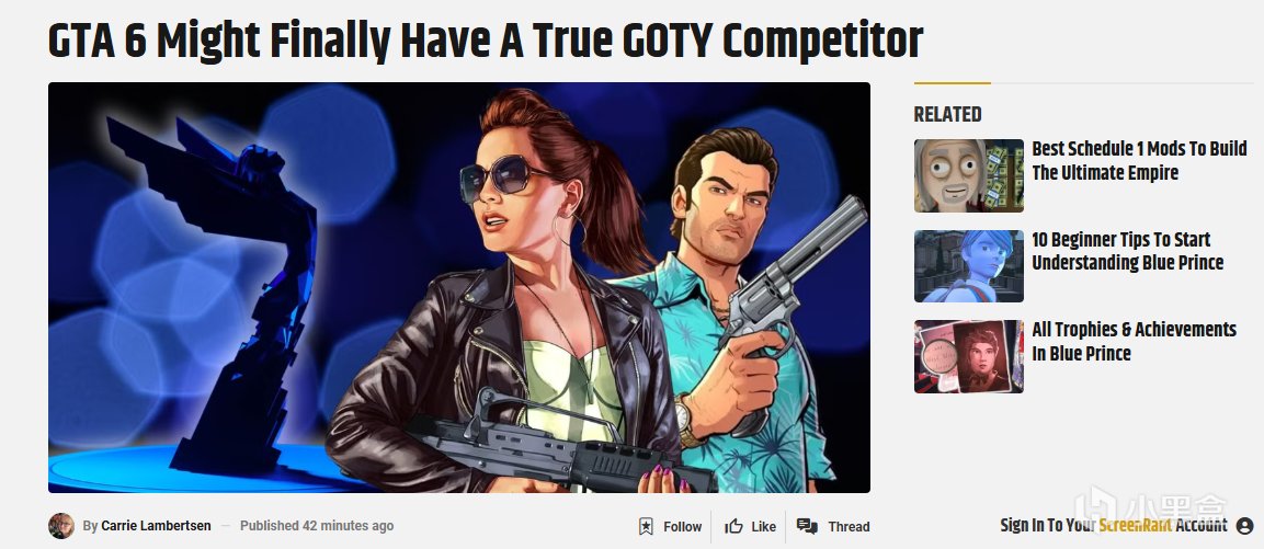 GTA6或許終於迎來真正的年度最佳競爭對手
