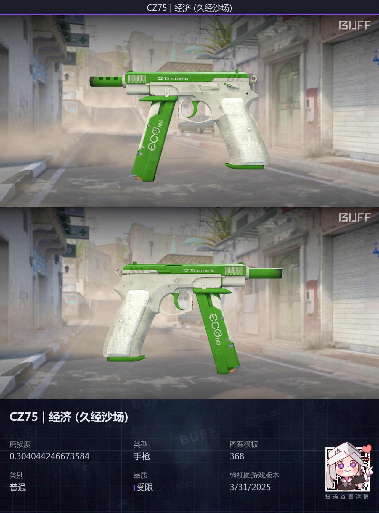 白色加綠色的配色給人一種很環保的感覺,怪不得叫經濟呢,配色很新奇,樓主記得咖喱也有同系列槍皮(有點貴樓主沒買)買着收藏了,玩了一百個小時了,樓主至今不知道這把槍的適用場景,有好心人可以給樓主科普一下嘛