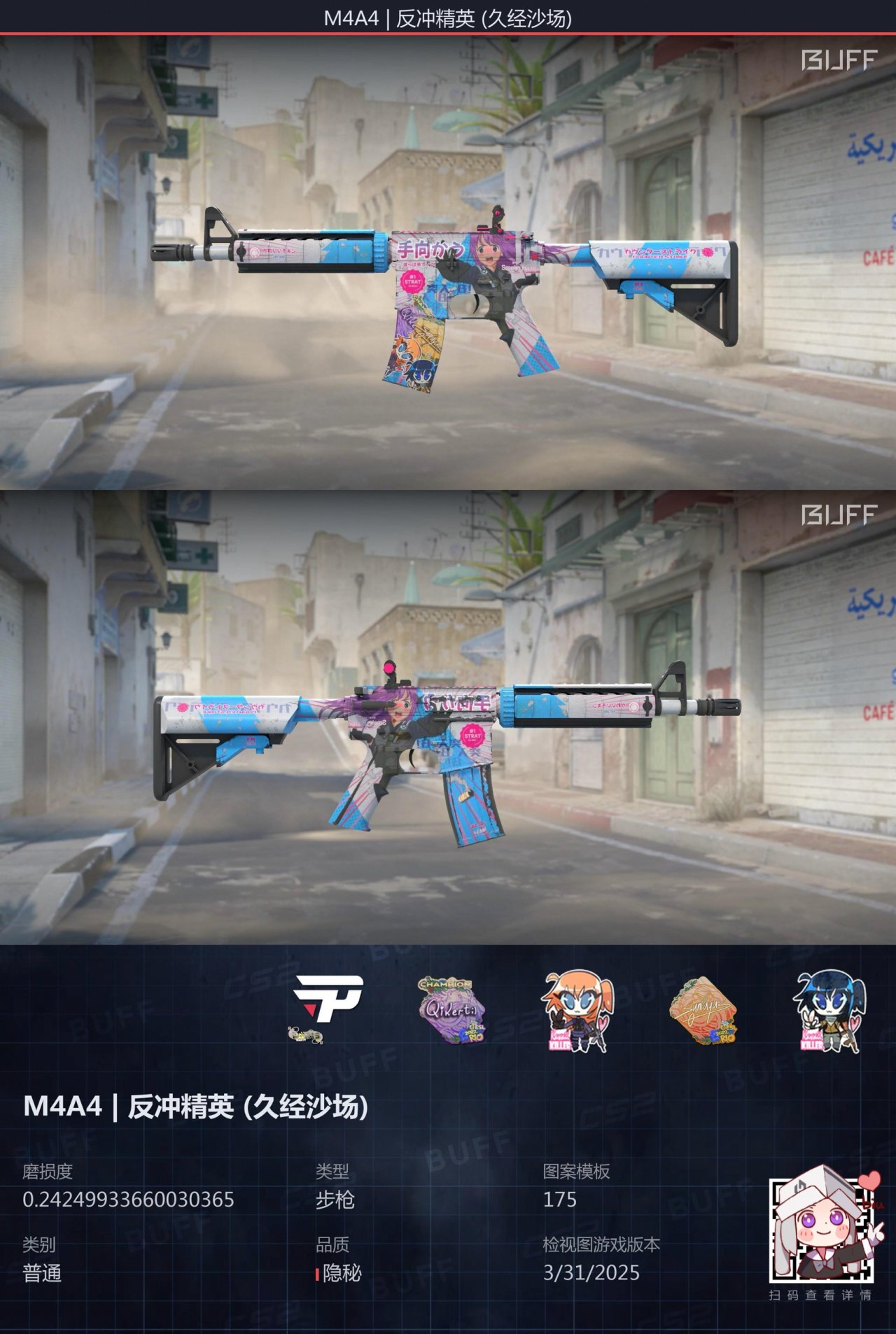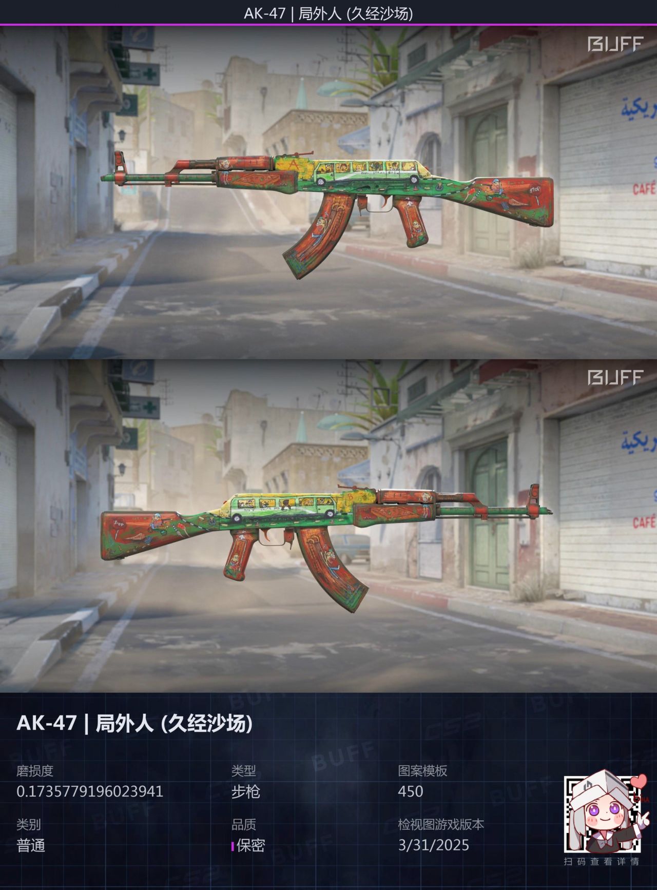 屬於樓主庫存裏面最貴的一把皮膚了,二次元角色很可愛,清新的配色也很討喜,極限酒精的價格有點高,所以樓主買的0.24磨損的,彈夾的磨損處,用貼紙掩蓋住了,遊戲內表現還可以,不說了,太可愛了捏