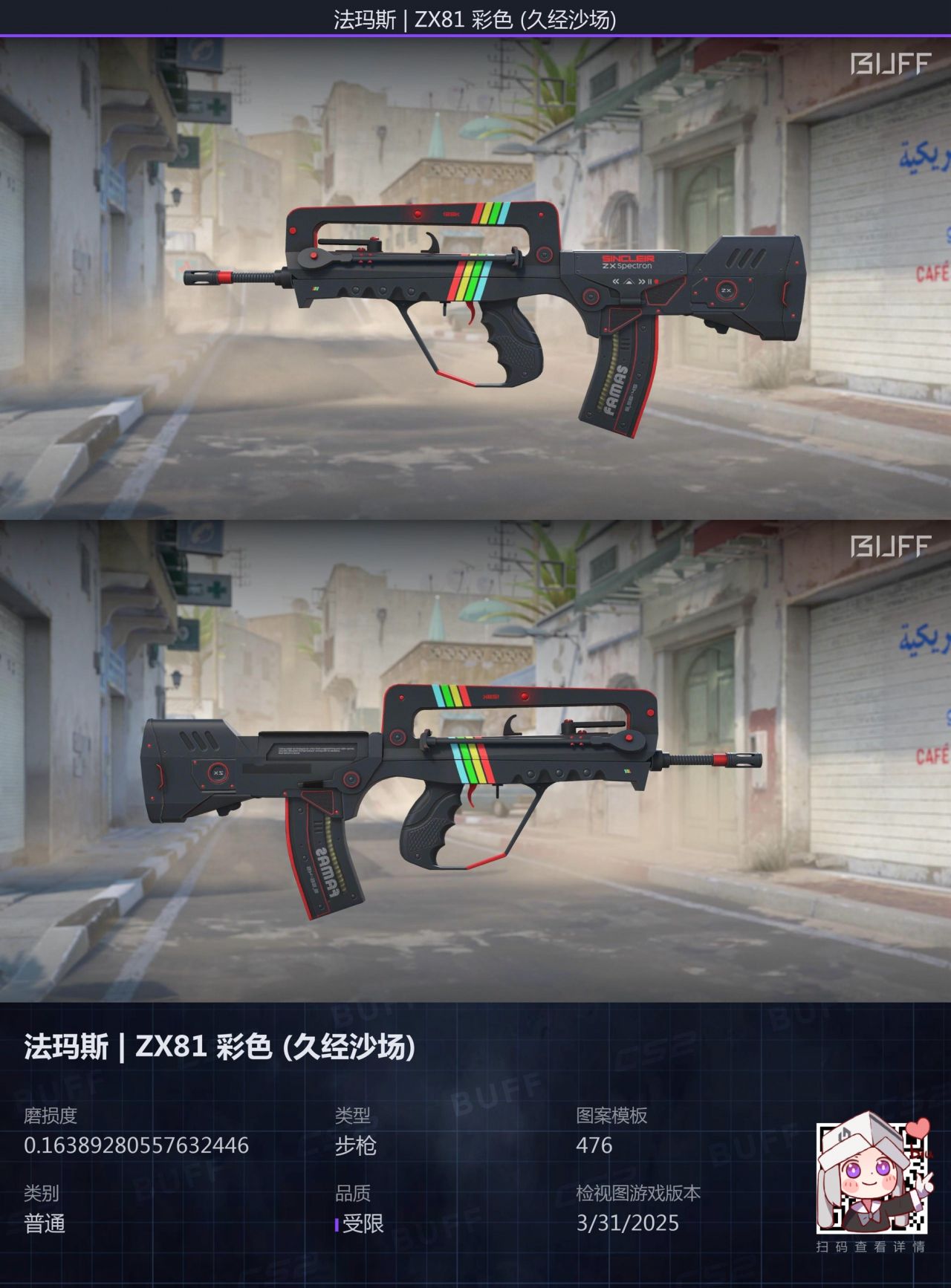 彩虹很有漂亮,具有科技感的文字裝飾,紅線的輪廓,不怎麼喫磨損,遊戲內很新,黑色純度很高,拿在手中乾乾淨淨的,都說法瑪斯Dog都進不起,不過樓主強起局,真的很喜歡這把槍