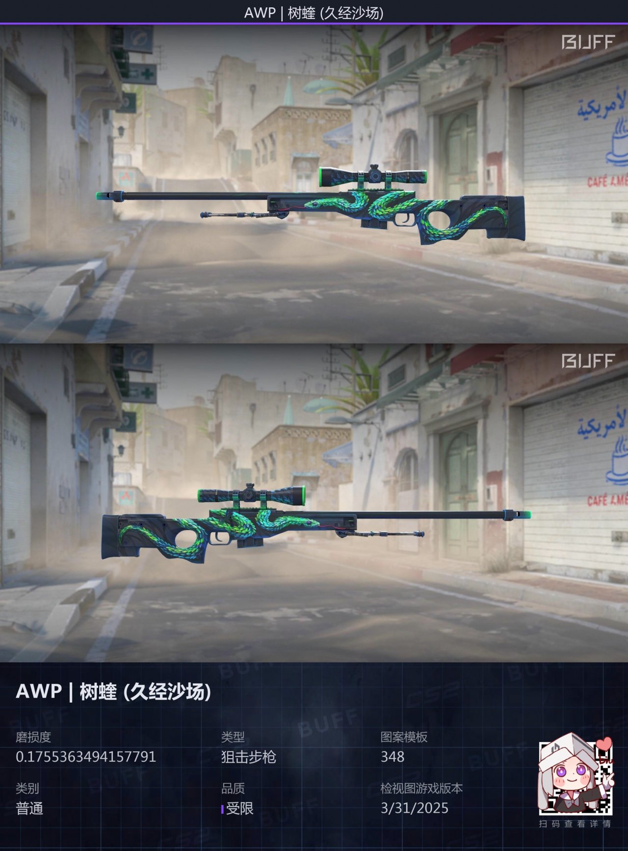 大名鼎鼎的蛇狙,很是霸氣,侵略性拉滿,蝰蛇的鱗片很真實,同樣也是不喫磨損,全磨還有意想不到的立體感,不過樓主不用這個,要roll給朋友了