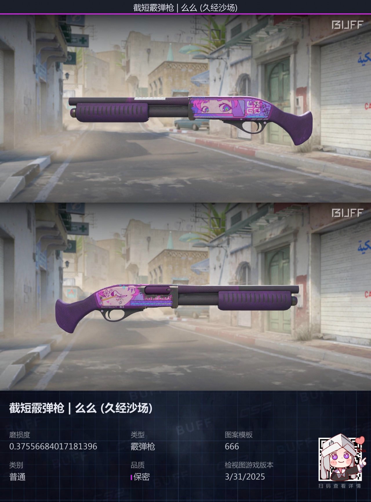 匪噴,純是奔着顏值去的,二次元是這樣的捏,暗紫色槍身,搭配二次元女孩,可愛捏,樓主一次也沒起過這把槍,純粹是買來收藏了