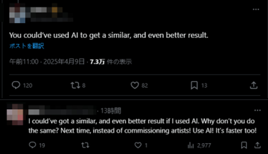 其實在評論區裏,你偶爾還會看到經典的“AI神教”論點:“用AI也能得到類似的,乃至更好的效果!”“用AI更好!更快!”……諸如此類的言論層出不窮,他們覺得ZackScott這種花錢請原畫師重繪的行爲,簡直是多此一舉。這既浪費錢財,又需要花精力去溝通,更是會受畫師本人限制,怎麼想都不如AI要來得自由。