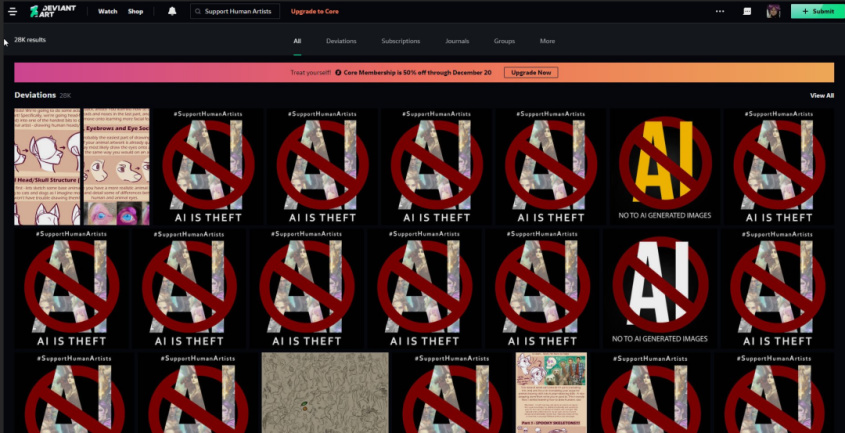 幾年前,以Stable Diffusion爲首的各類AI繪畫,剛剛大規模流行於互聯網時,就誕生過一陣反AI的熱潮。畫師們認爲,那些AI繪畫只不過是拙劣的縫合怪,是畫手畫腳都費勁的半成品,並且這些模型還可能滋生“隨意喂圖”等嚴重損害畫師權益的行爲。於是,對於不尊重畫師權益的AI,大量拒絕“喂圖”的方式誕生,畫師們以自己的方式反對着AI。