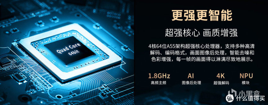 猫我X3 Pro采用的是4核64位A55架构的处理器,其主频为1.8GHz,拥有AI图像后处理能力,可以进一步优化投影画质。