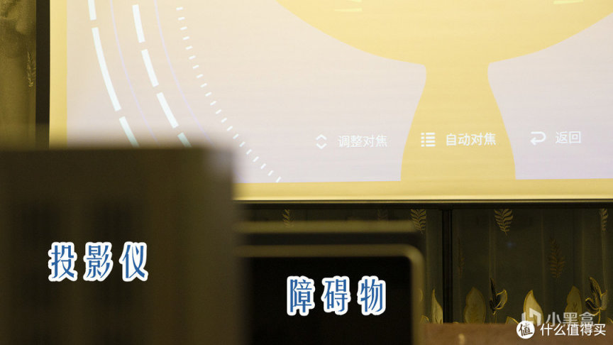 开机之后,猫我投影会自动根据屏幕或墙面对焦。若感觉对焦不够清晰还可以在“设置>投影>画面对焦”中通过遥控器的上下按键进行微调。