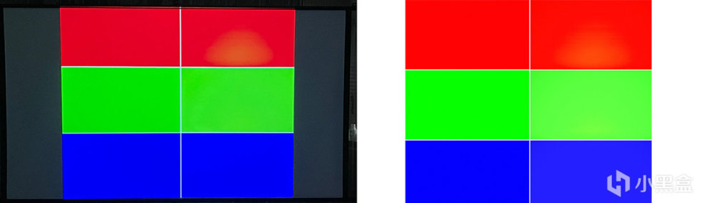猫我X3 Pro采用了DMD光机,类似单反镜头多组多片的解构,也有着更好的光学效果。因此,它的分辨率能够达到主流的1080P(兼容4K),支持HDR10动态增强,有着10.7亿原色的显示效果,我们来看一组对比图片,先来看红绿蓝三原色的表现。