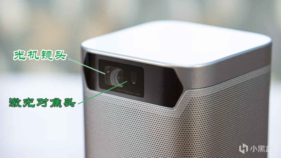 猫我X3 Pro投影主体为铝合金机身,哑光的喷漆也更有质感。从正面看,黑色的区域内集中了光机镜头和两个激光对焦头,
