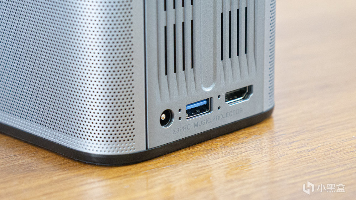 下面则采用了近似蜂窝的设计,里面暗藏了Hi-Fi级别音质的喇叭,多孔散热形成了良好的对流,也保障了投影的稳定。