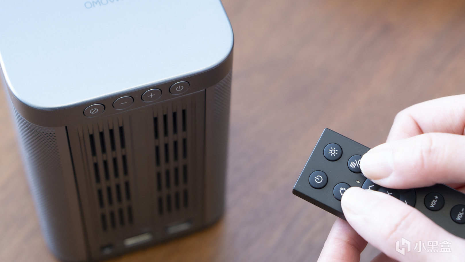 初次开机,需要我们在10厘米的范围内,长按遥控器的“主页键”和“菜单/设置键”来与猫我X3 Pro投影仪配对。由于是蓝牙遥控器,所以我们在使用全过程之中,不需要对准特定位置,随心遥控即可。