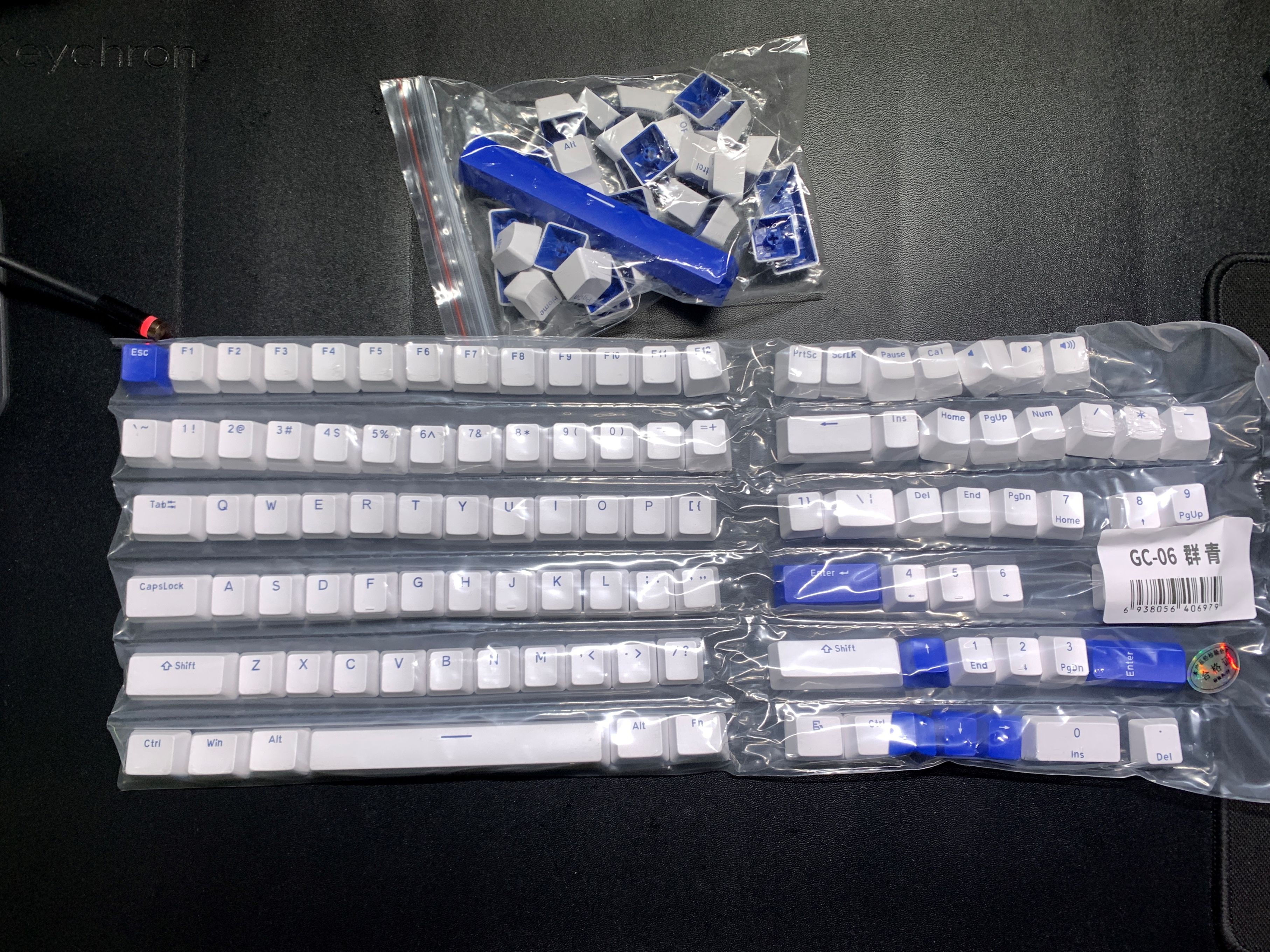 这里有意思的是,他给你发货的时候并不会把你选中颜色的键盘发给你,而是统一发一个一样的键盘,再给你发一套你选中颜色的键帽,这里有点意思,等于你花了一份的钱,买了两份的键帽,不得不说高斯这样搞,这个价格有点香。