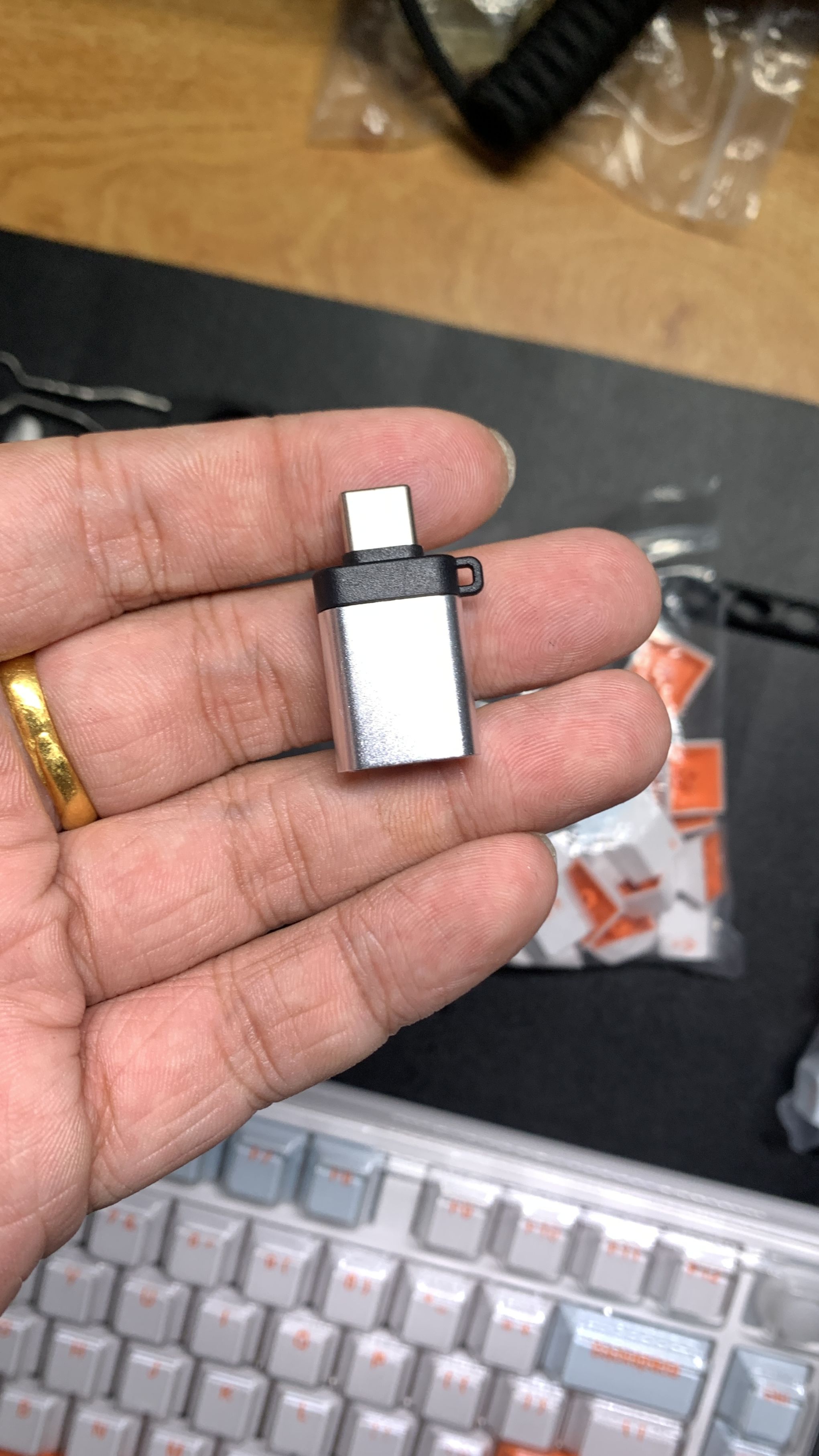 配件这边值得一说的就是这个转换接头,这极大的方便了苹果电脑用户啊,哪怕你搞一个这个回去装自己喜欢的键盘上,那也是很值的。
