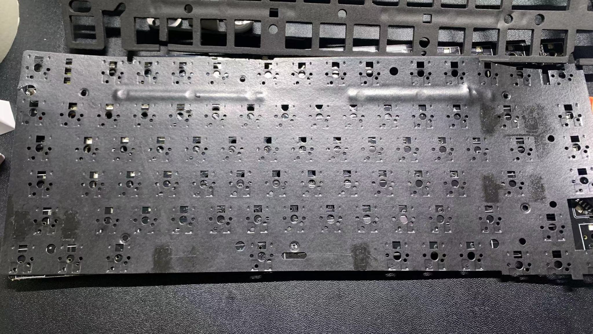 其实pcb也做了开槽的设计,但是由于我忘记拍照了,而且现在人在出差所以不能拆开键盘再拍一遍,这里跟各位说一声抱歉。