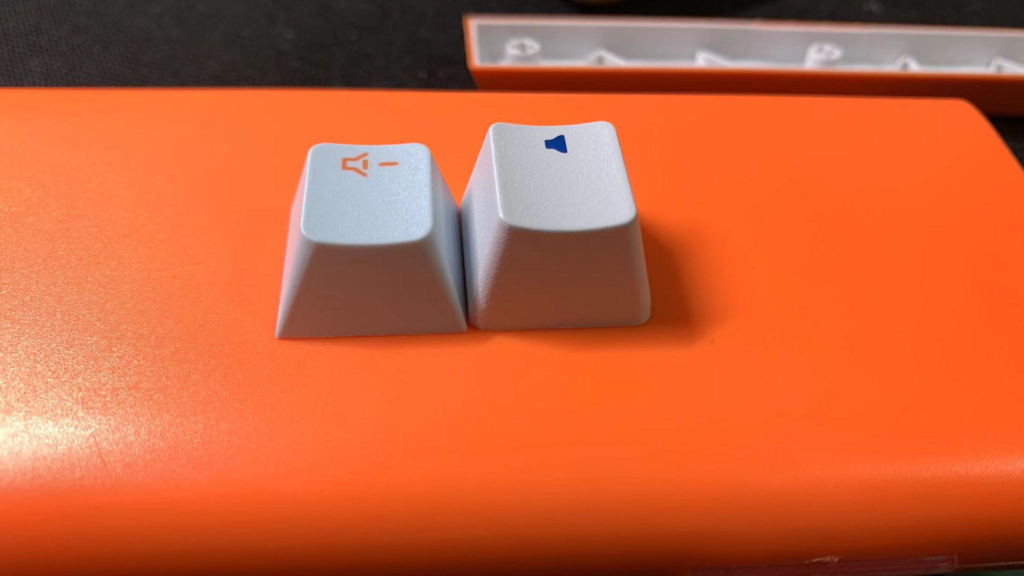 我们简单看一下键帽,键帽给了两套,两种高度,键帽是一个标准的二色键帽,但是水口处理不好,有明显的水口,也有点拉手,空格平整度方面,整体把控还算不错,放在平面上没有跷跷板的现象,但是水口处理有待提高,键帽总共给了两种高度原厂以及oem高度,这里就看你喜欢哪一种高度,喜欢哪个用哪个。这等于花一份钱买了两套小全套键帽。