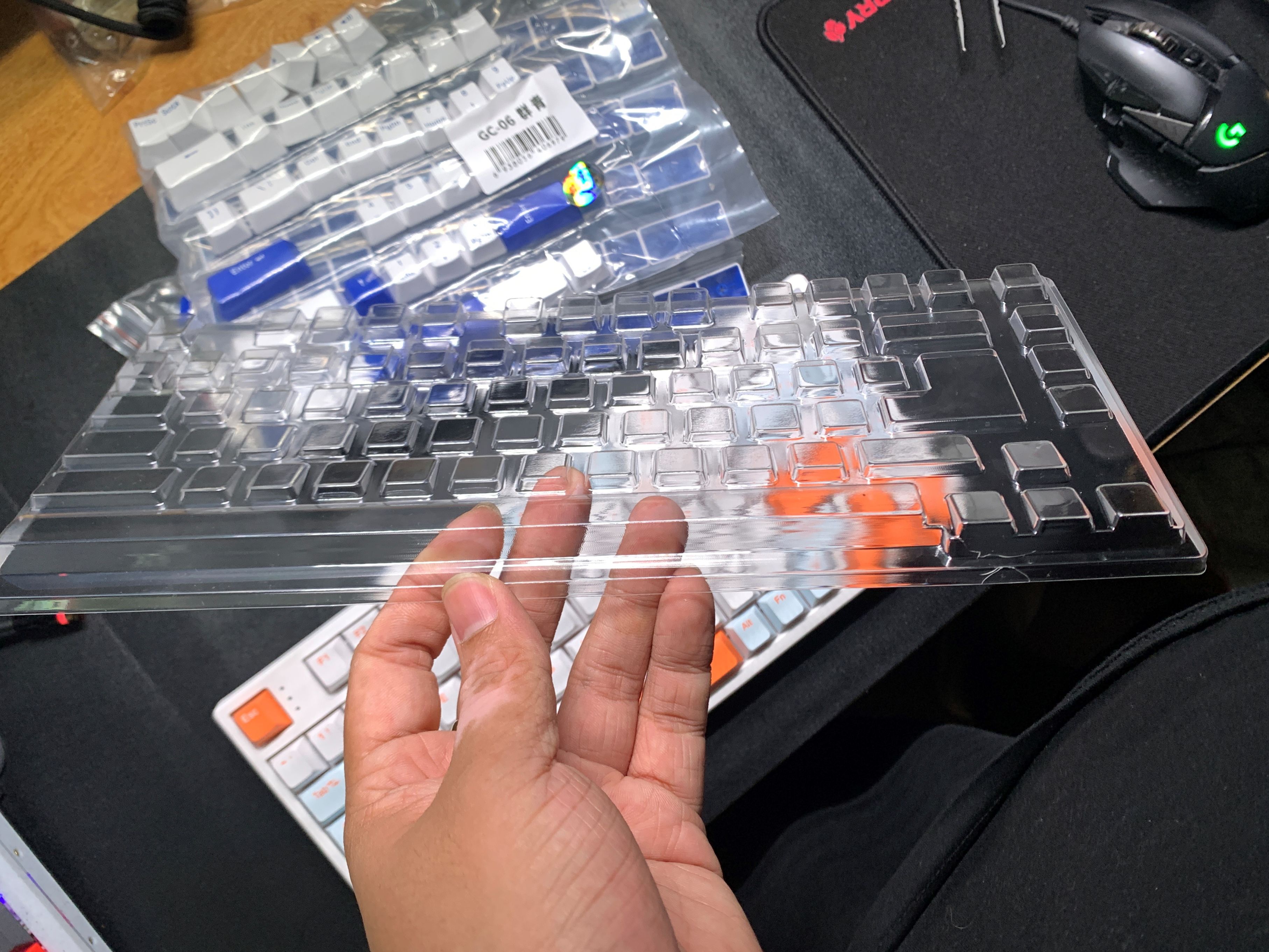 首先看一下防尘罩啊,他这个是一个单独开槽的做的防尘罩,这样做其实无形中加大了一些成本,设计了键帽的贴合度,但是说句实话,我感觉有点丑,而且真实的情况下我不会用防尘罩,但是俗话说的好嘛,我可以不用,但是不能没有!