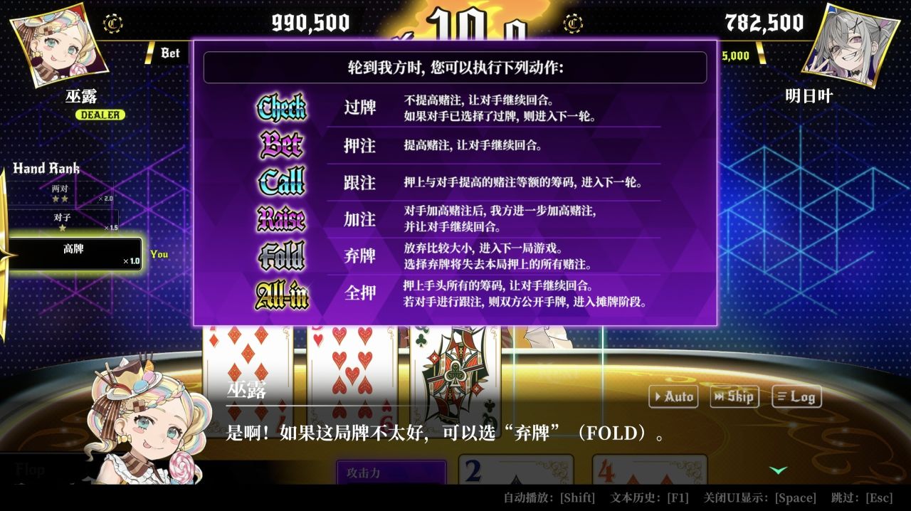 一開始我是奔着畫風來的,聽說賭牌玩法的時候還擔心會不會難以上手,因爲我之前沒玩過德克薩斯撲克,在嘗試過後就發現其實還行,學會看牌型比大小就夠了,更多的還是看時機的把控,什麼時候該加註,什麼時候該棄牌。