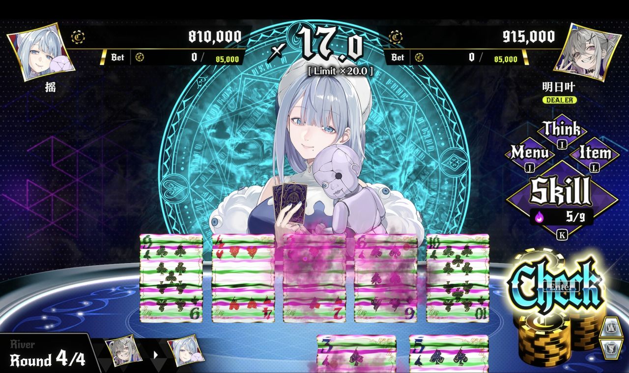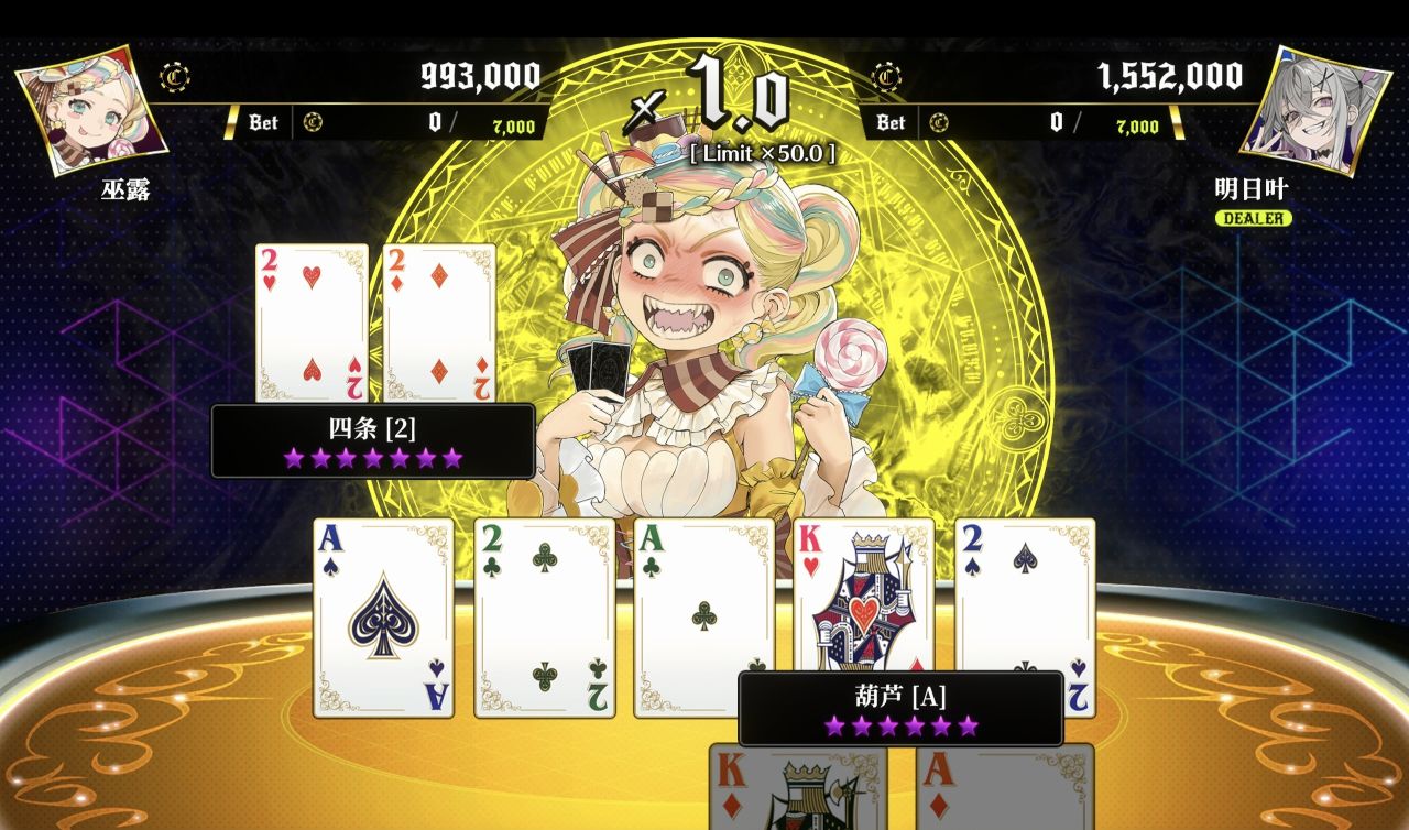 因爲雖然我們能看清“運氣的流逝”,但是並不能看穿千術的手段,她的每一把手牌都是好牌,這魔女自然是出老千了,而失敗的下場,便是被這魔女狠狠咬了一口肩上的血肉,不甘失敗的我們麼與這魔女定下了“深淵對局”,決定一雪前恥。