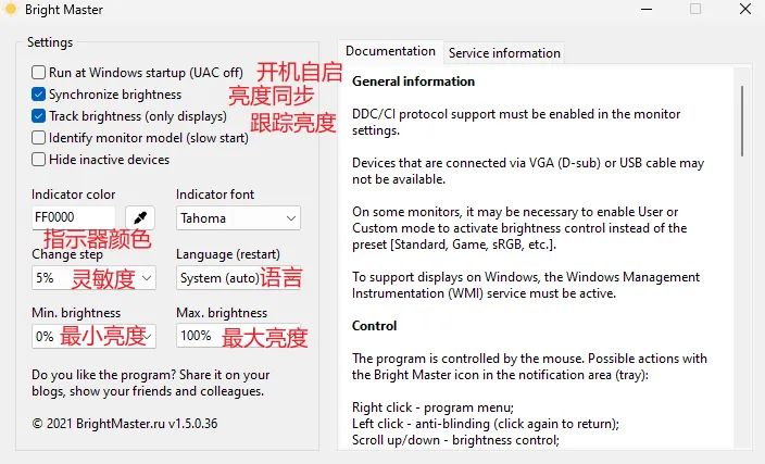 和Monitor Brightness Adjuster相比,這款可以在系統任務欄實時查看此時的屏幕亮度。(默認的顏色是白色,不顯眼。我換成了紅色)