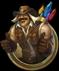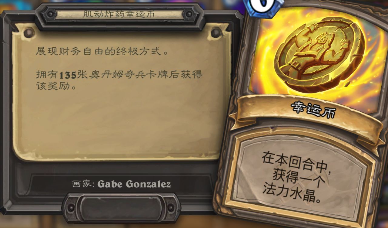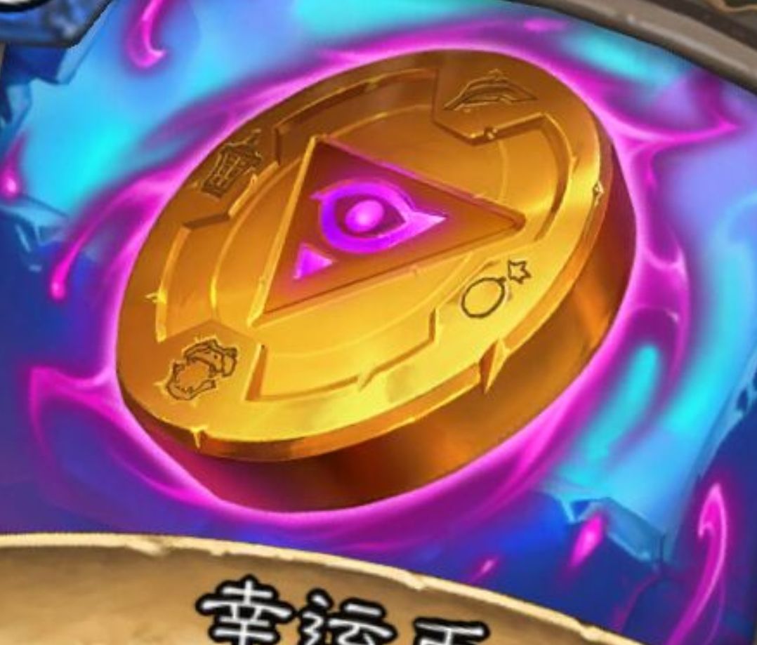 通過服飾以及鬍子可以看出,幸運幣上面畫着的人是脫了帽子的冒險家雷諾,雷諾應該是是奧丹姆奇兵最出名的一張卡之一了。
