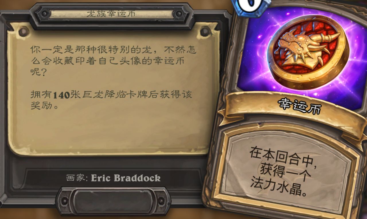 巨龍降臨拓展包的幸運幣,上面畫着一個巨龍的頭像。