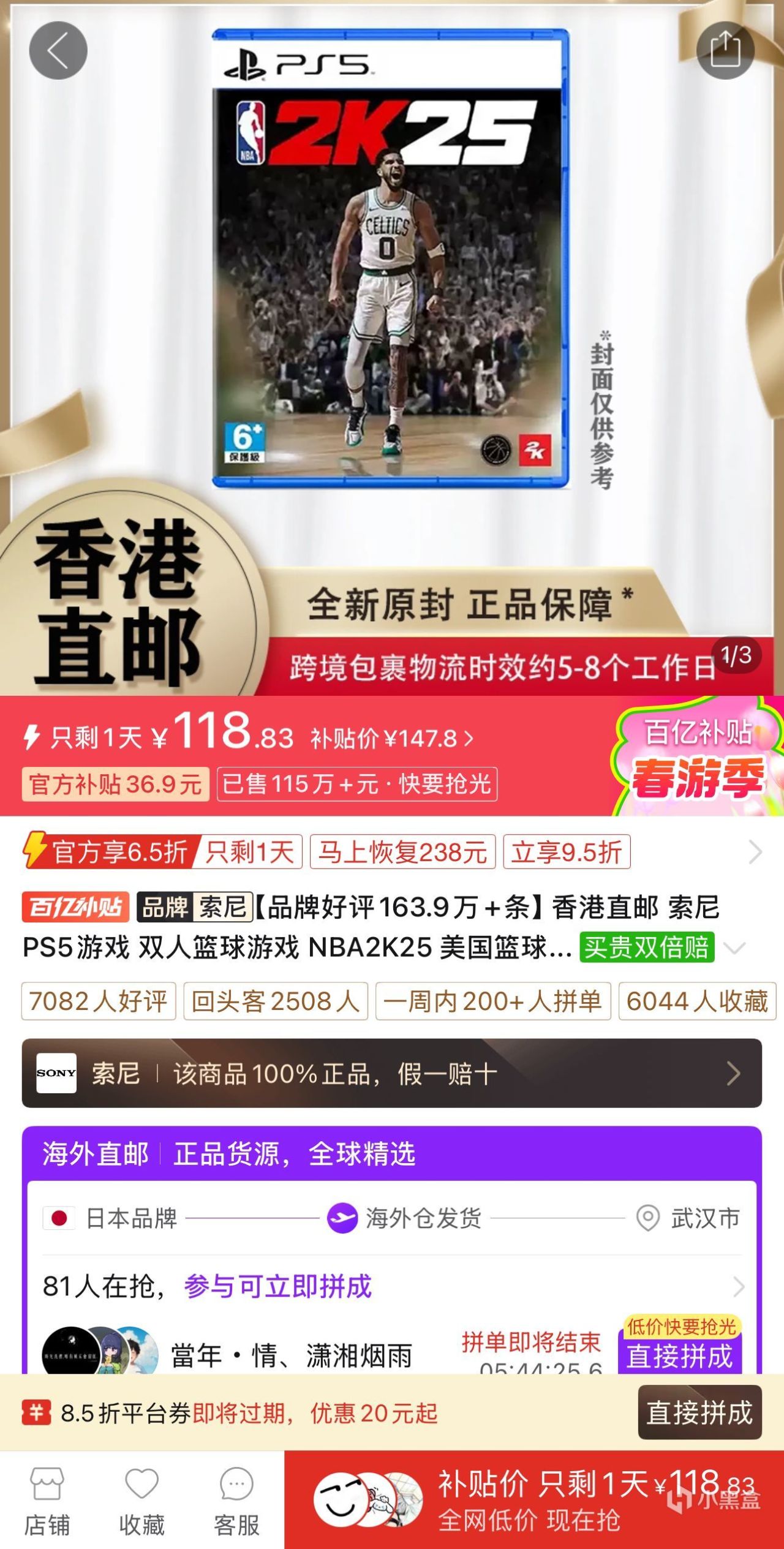 3.PS5遊戲《NBA 2K25》港版中文全新118.83元包郵,比吐槽君上期推薦又便宜了20大洋,說不定哪天99元全新包郵不是夢,這類年度籃球遊戲就是掉價快。
