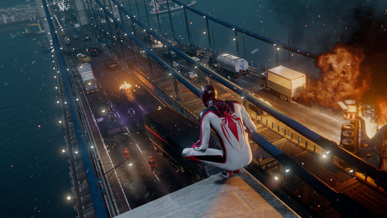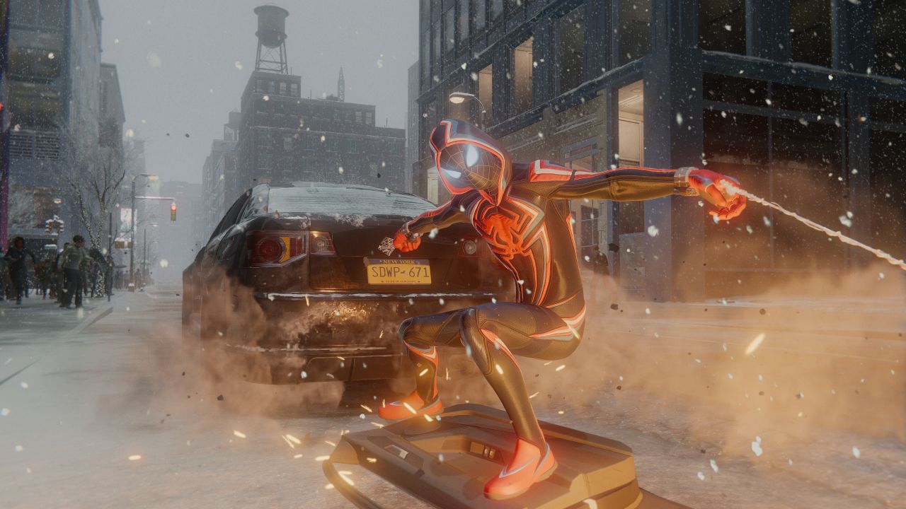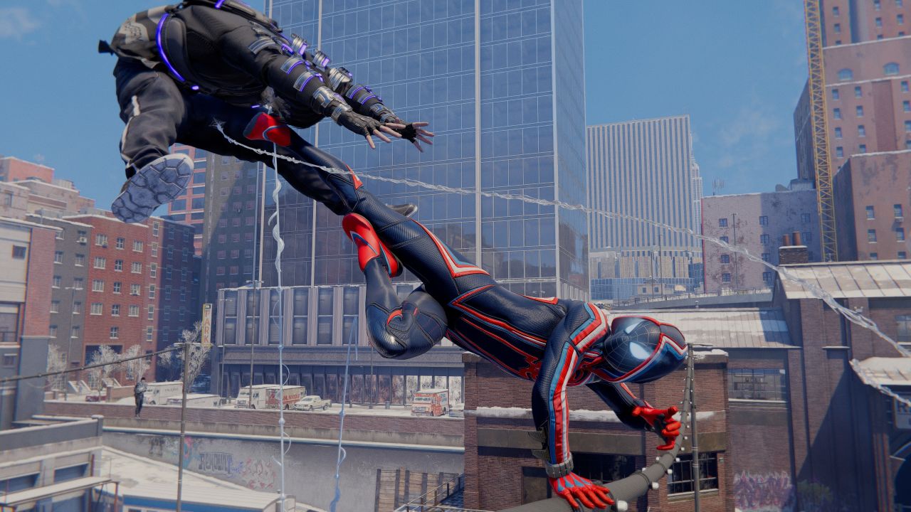爽得一,DS5手柄完整适配,震动十分细致,而且不管是战斗方面还是荡蛛丝动作都很流畅,特别是荡蜘蛛丝,不知道是不是因为迈尔斯是个新手蜘蛛侠的原因,总觉得他的动作比前作蜘蛛侠多了很多,纤细的身材和不熟练的身法呈现出来的动作更加的灵活顺畅,导致我玩的时候荡蛛丝真的巨爽,没有前作那种相比笨重的感觉。除此之外战斗方面也是挺加分的,这个生物电用起来很爽,能做到快速清场,就是有点套路化了,我敢保证百分之八十的人战斗的时候必是长按X重击击飞然后在天上一顿乱打,之后再按Y拉进再循环,人多就生物电,不过不管怎么说,爽确实是爽。永远不抬头的敌人也让潜行变得简单无比,不过我还是比较喜欢莽到底,除非为了做任务要求或者成就。还有就是本作的流程真的巨短,短到我没怎么感觉到前作那种重复的罐头感,这游戏做到《漫威蜘蛛侠》里当做DLC卖一点不违和,就多了个生物电机制和新蜘蛛侠的动作模组雪天场景就单独拿出来卖我个人是觉得不值得买的,但是如果足够便宜还是可玩,毕竟这个蜘蛛丝荡的很爽,前提是你没玩过《漫威蜘蛛侠2》。