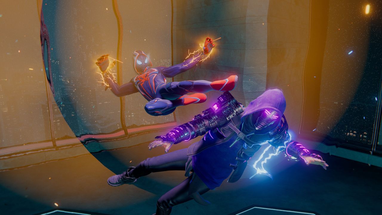 很简单很单薄,不知道是不是流程太短了,我没什么特别记忆深刻的地方,哪怕是二周目有很多地方不能跳过剧情我硬是看完了也没什么感触,不过整体玩下来我唯一最大的感受就是开局彼得帕克被犀牛人打趴下我是真没绷住,然后强行机械降神给迈尔斯整个什么生物电,名字还叫毒液,是为了蹭那个外星来物的名字还是说这个生物电像是蜘蛛与生俱来就有的毒液一般所以就叫毒液我就不懂了,我也不记得前面有什么伏笔有说这个生物电的事,还有后面的隐形技能,反正莫名其妙就立起来了,把犀牛人锤飞了,然后随便给BYD帕克编个什么度假上班的理由让迈尔斯暂时变成纽约的唯一主角,太牵强了,还有我很反感蜘蛛侠和蝙蝠侠这两个热门超级英雄世界观的设定,就是没有死刑主角也不杀人,然后剧情就变成了把反派打败,之后反派越狱带着新的计划装备卷土重来,然后又被打败,再联合其他反派越狱来个排列组合跟主角玩车轮战,显得这个世界的司法机制和监狱像个笑话。再说回来游戏剧情,由于太单薄了导致我都不是很懂这个修补匠干坏事的动机是什么,还有里面两边势力都在做啥我也没懂,反正干就完了,最后修补匠死了我反正是共情不了的,干了这么多坏事还想洗白啊?再有苦衷那也是有苦衷的恐怖分子罢了。