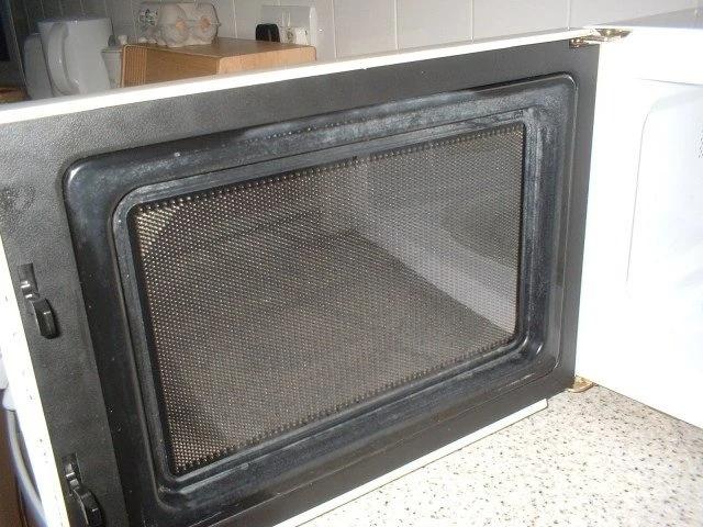 10、微波爐門上黑色網狀格柵,也被稱爲光柵,是用來阻擋微波的,物理意義上的真正阻擋!外面的玻璃其實不能起到阻擋作用!