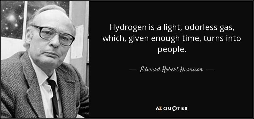 11、英國宇宙學家愛德華·哈里森曾經說過:“氫氣是一種無色無味的氣體,只要給它足夠的時間,它就會變成人。”
