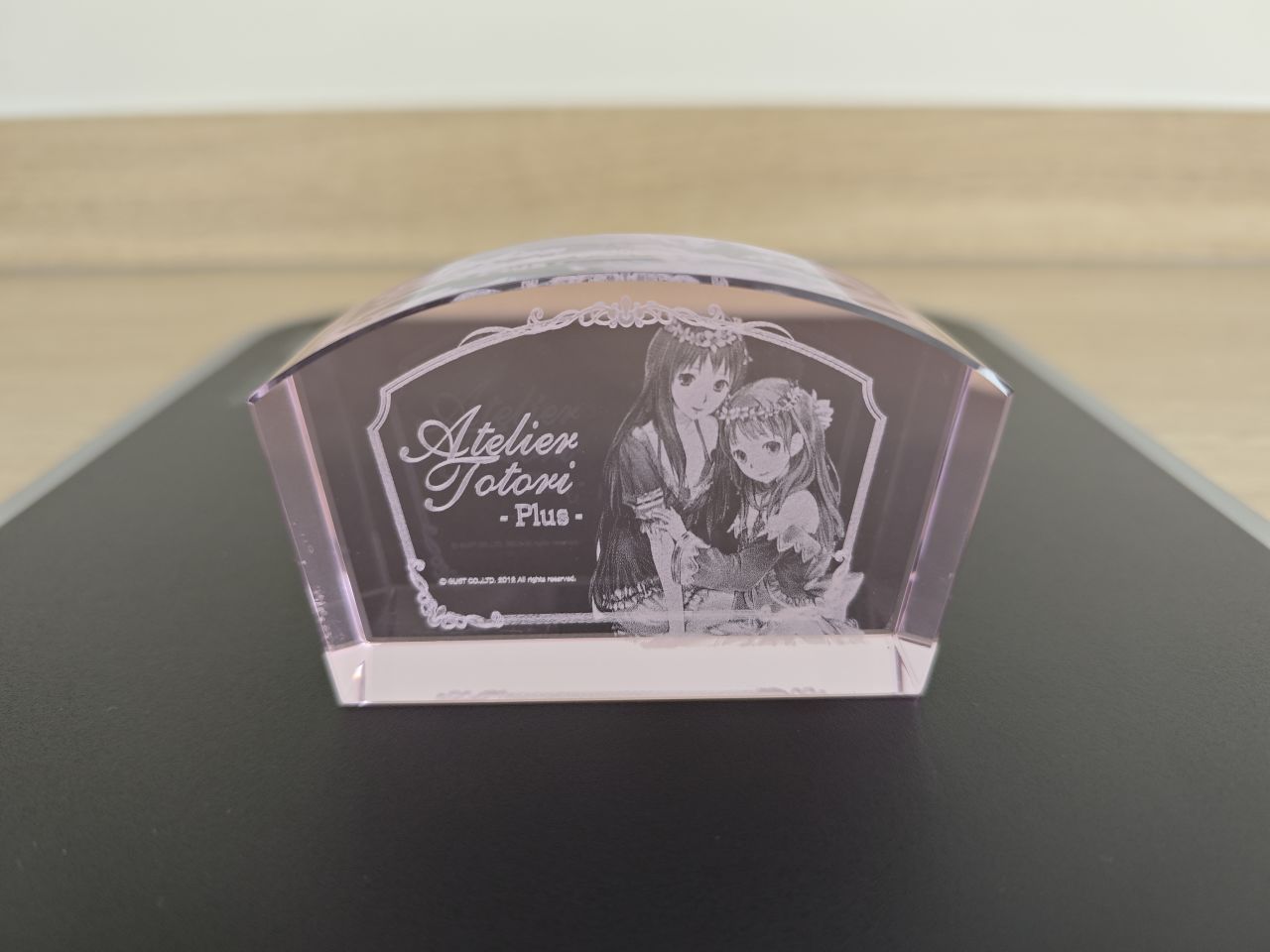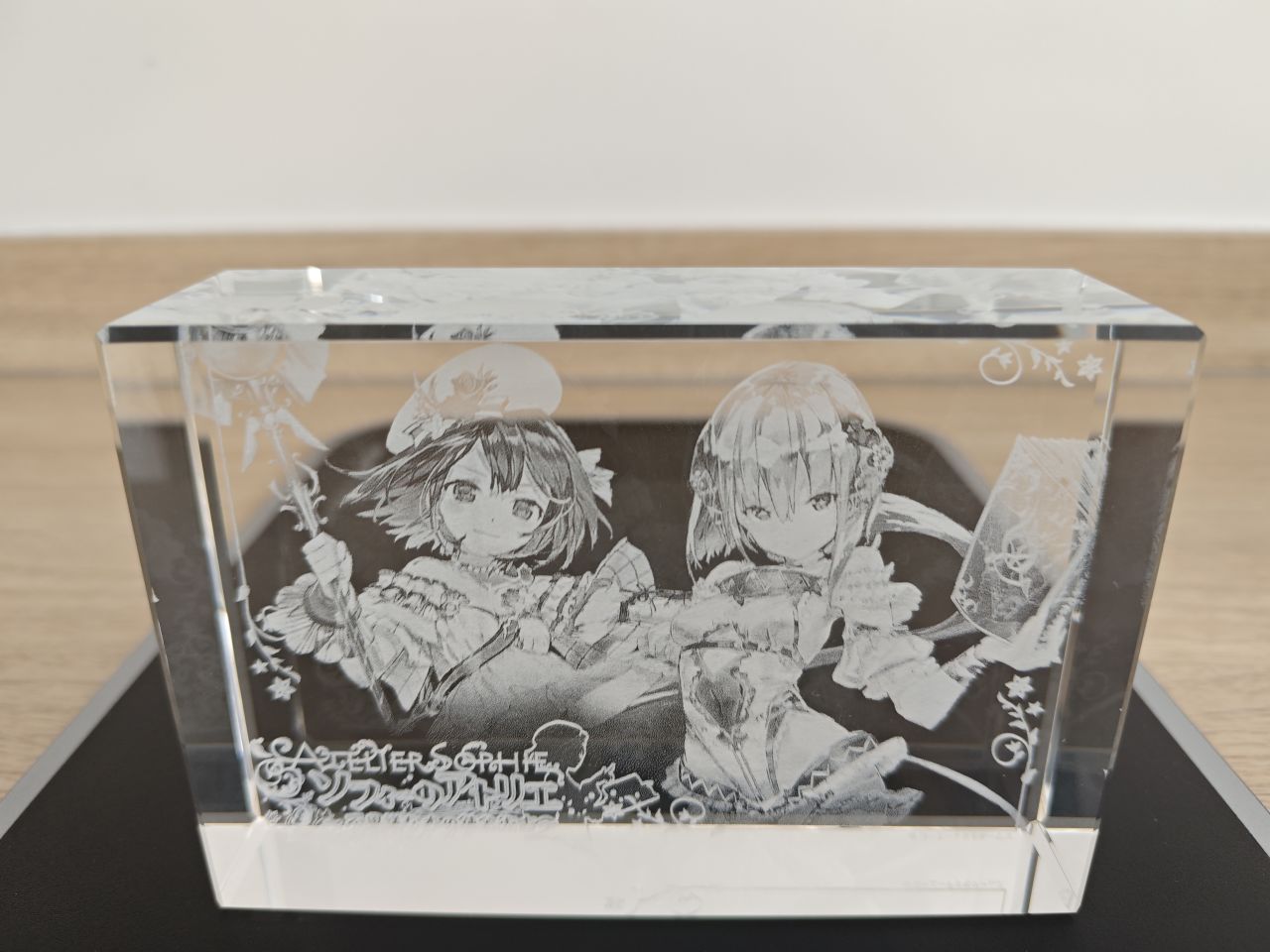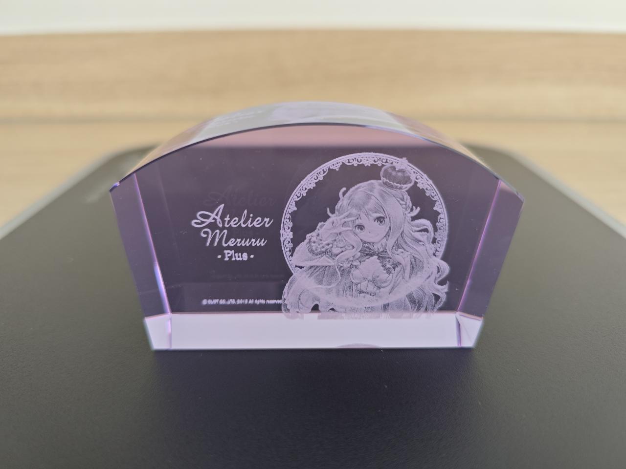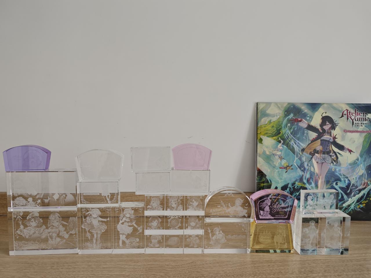 至此鍊金工房系列所有的水晶磚就展示完畢了,而萊莎三部曲和優米雅,光榮都取消了水晶磚這個已經成爲鍊金工房象徵符號的實體周邊,其出發點至今不明,大概降本增效已經成爲上市企業的職業病了吧。當然了,也並不是沒有代餐,每一代的預購店鋪特典中ebten家一般都是3D水晶燈,非要把它當成是水晶磚也不是不行,比如這兩塊萊莎和蘇菲的↓